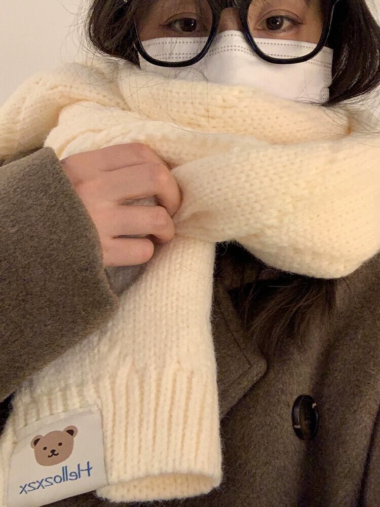 かわいいクマツイストニットスカーフ女性の冬 ese オールマッチ暖かく防寒学生カップルウールスカーフ潮 大人ガーリー スウィート キュート カジュアル ウィンター 冬物 15dd73770737568