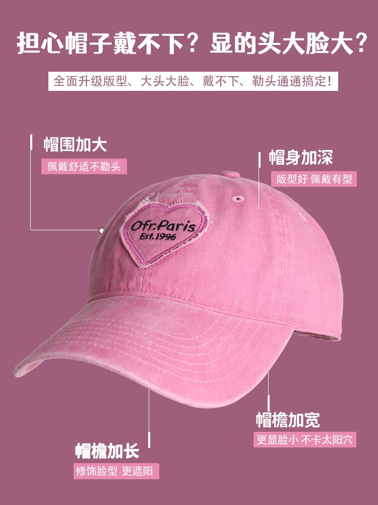 古い野球帽女性 2023 新しいレトロな無地の顔かわいい春と夏の大きな頭囲ピンクのピークキャップ潮 帽子 大人ガーリー スウィート キュート カジュアル スプリング 春物 サマー 夏物 15dd95488653311