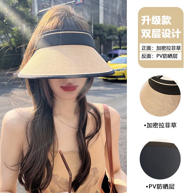 黒のり空のトップ日焼け止め帽子女性の夏の UV 保護 2023 新しい顔を覆う麦わら帽子ビーチサンシェード日よけ帽子 ブラック サマー 夏物 15dd1177840800