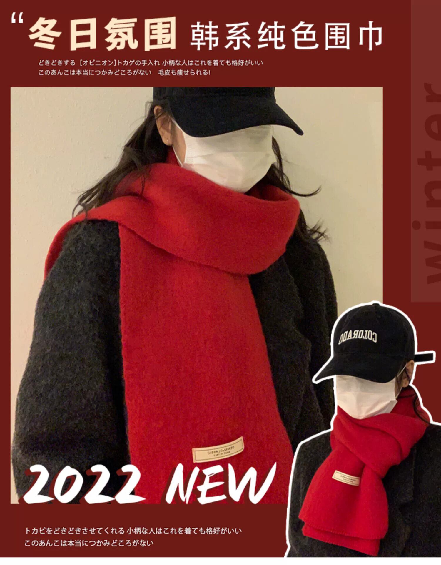 スカーフ女性の冬の高度な感覚 2022 新しい模造カシミアオールマッチ赤クリスマススカーフ学生を暖かく保つカップル レッド ウィンター 冬物 15dd40787921613