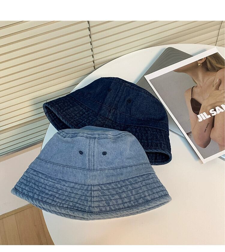 古いレトロな洗浄デニム漁師の帽子の女性の夏バージョンのインオールマッチショーフェイス小さな日よけバケツ洗面器帽子 サマー 夏物 15dd66603838652