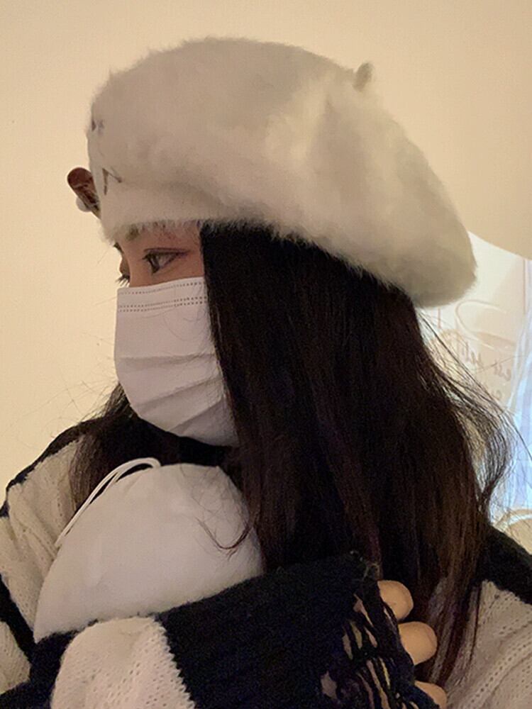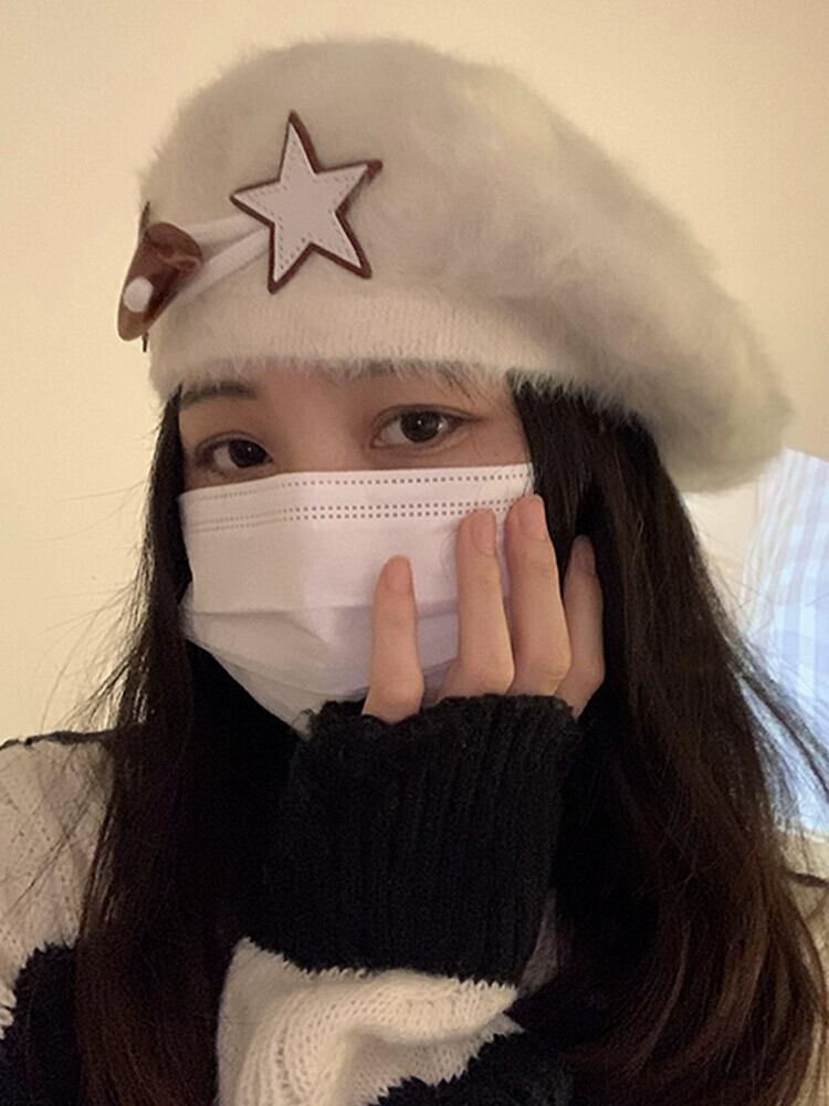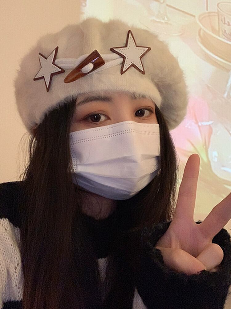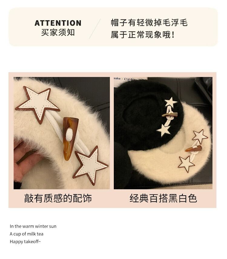 ins ネットのバージョン赤い甘いスターウサギの毛皮のベレー帽女性の秋と冬のオールマッチ学生レトロ画家帽子潮 レッド 大人ガーリー スウィート キュート カジュアル オータム 秋物 ウィンター 冬物 ベレット ヘアアクセサリー 15dd94986551240