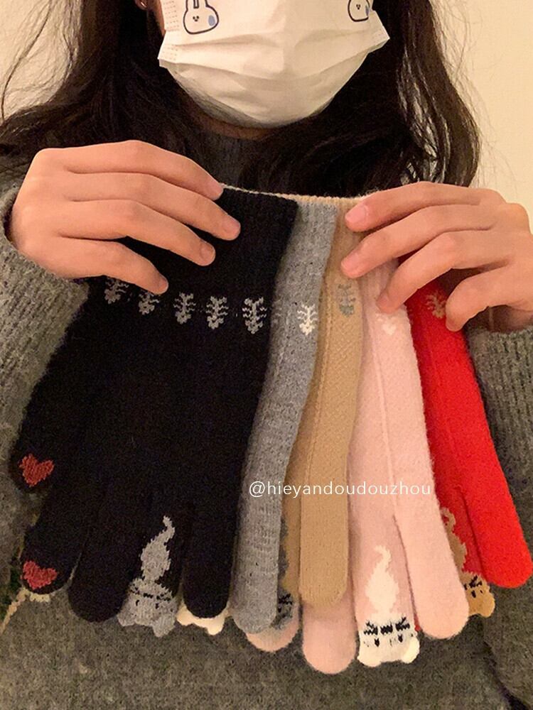 赤いベルベットの手袋、女性の冬用のかわいいオールマッチの指を指し、暖かく学生を厚くし、乗馬や書き込みが画面にタッチできるようにします。 レッド 大人ガーリー スウィート キュート カジュアル ウィンター 冬物 15dd47876174213