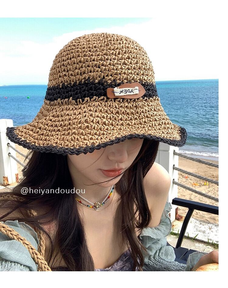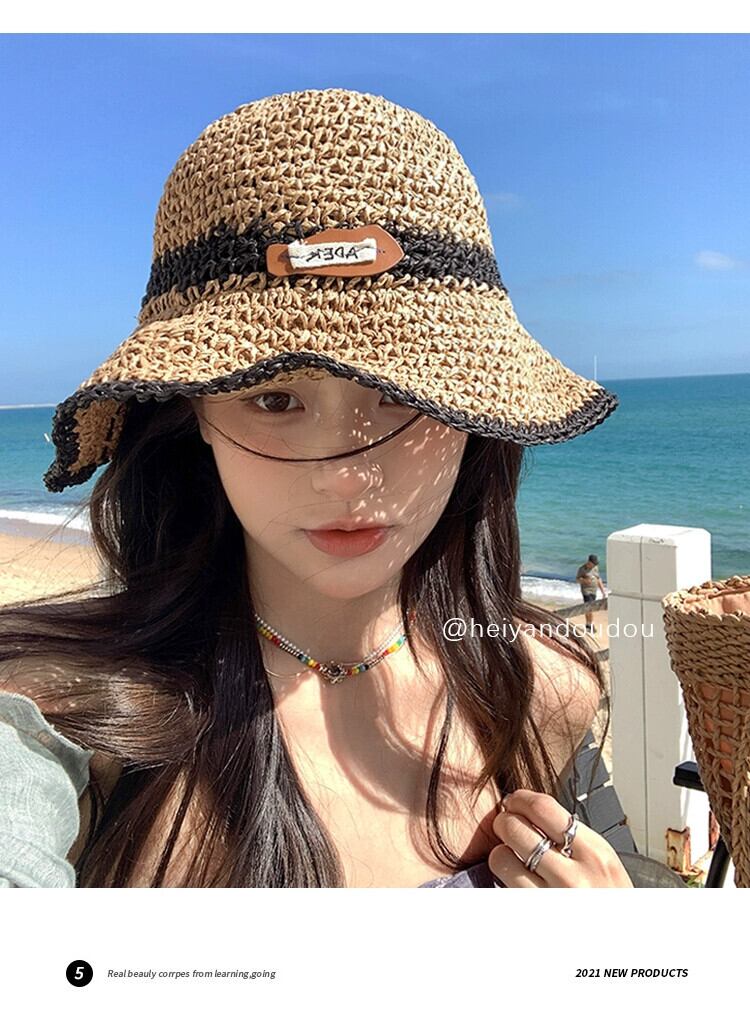 帽子女性の夏バージョン中空日よけ帽子海辺の休暇手織り麦わら帽子大きなつば日焼け防止日よけ帽子 サマー 夏物 15dd26377041256