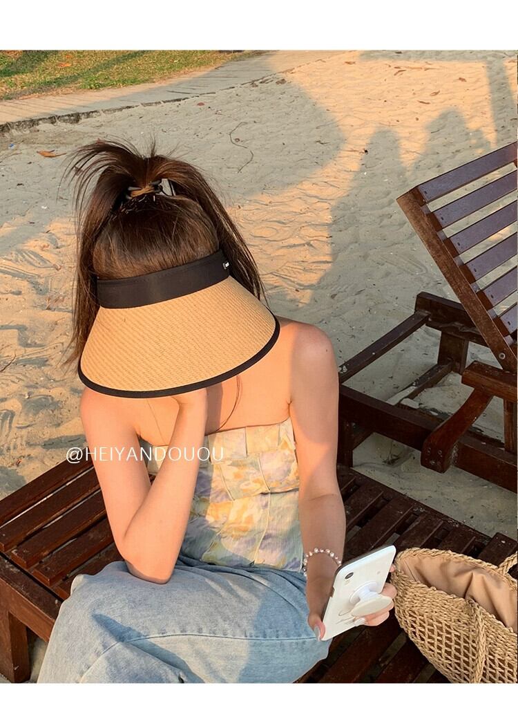 巻き上げ可能な折りたたみ式わら空のシルクハット女性の夏のサンシェードサイクリング太陽の帽子抗紫外線太陽の帽子 サマー 夏物 15dd7727958344