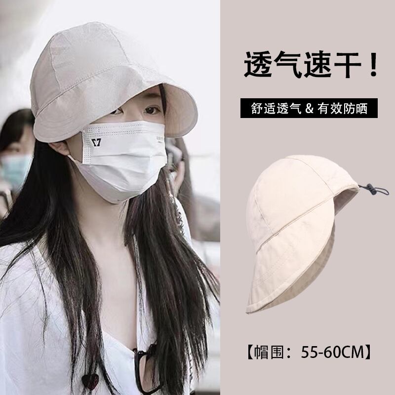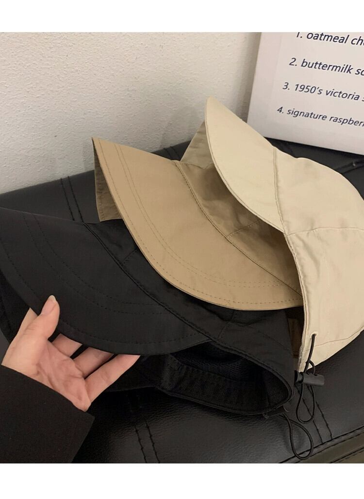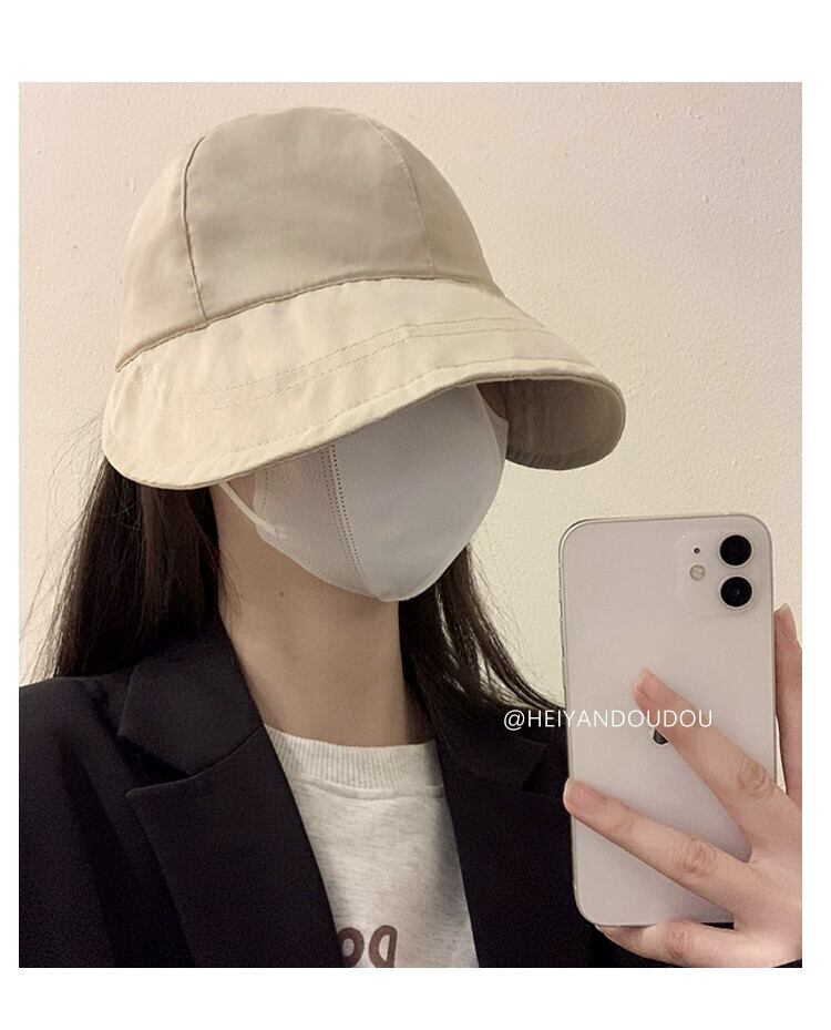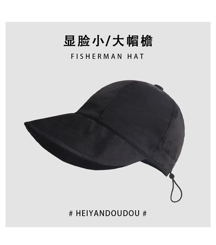 Zhao Lusi の同じスタイルの帽子女性の夏の日焼け止め漁師の帽子顔が見える小さな無地の顔を覆う帽子黒のサンキャップ ブラック サマー 夏物 15dd87855968727