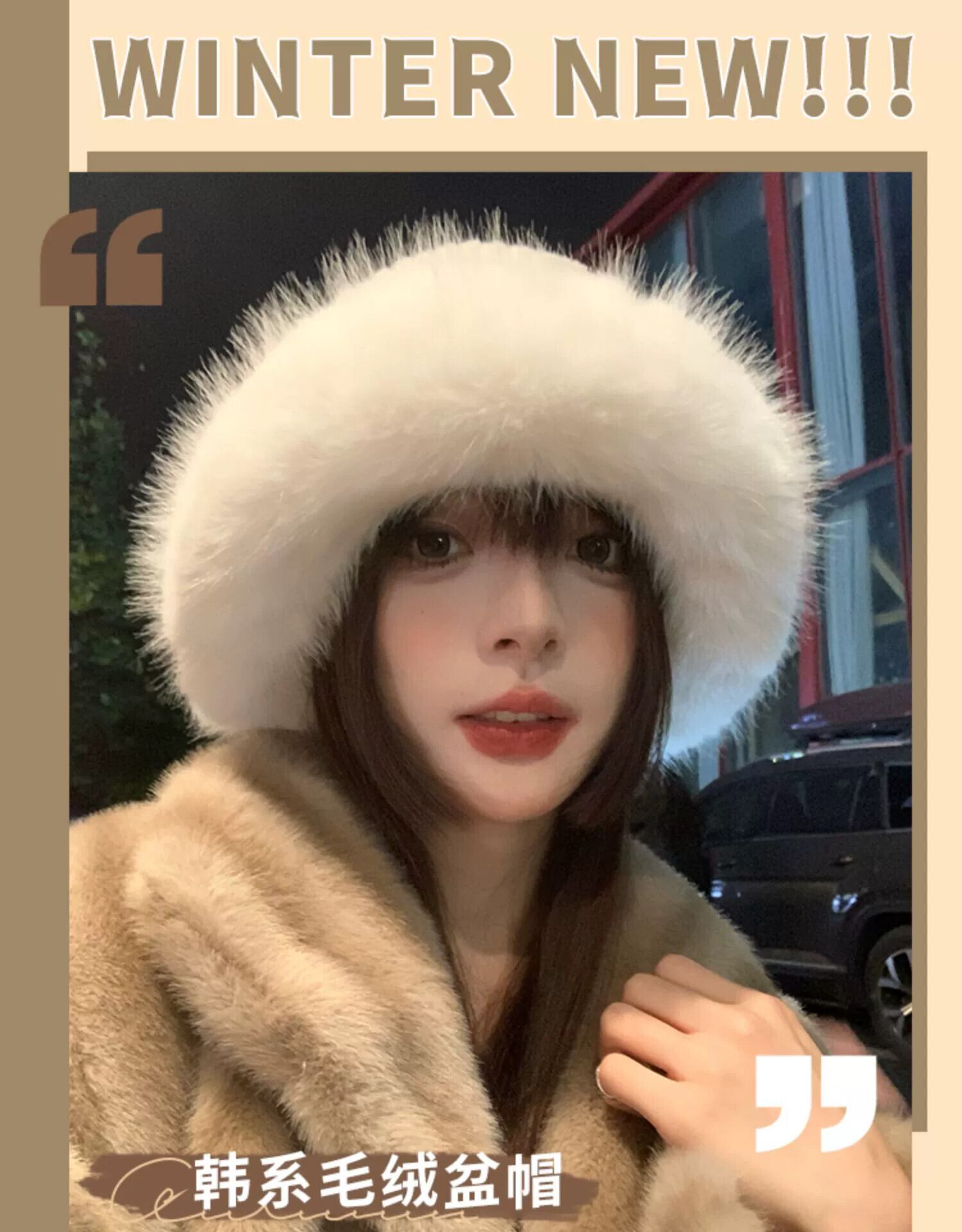 模造毛皮の帽子漁師の帽子冬バージョンの女性 2022 新人ショー小さな耳保護洗面器帽子ぬいぐるみ暖かい ウィンター 冬物 15dd36182357724