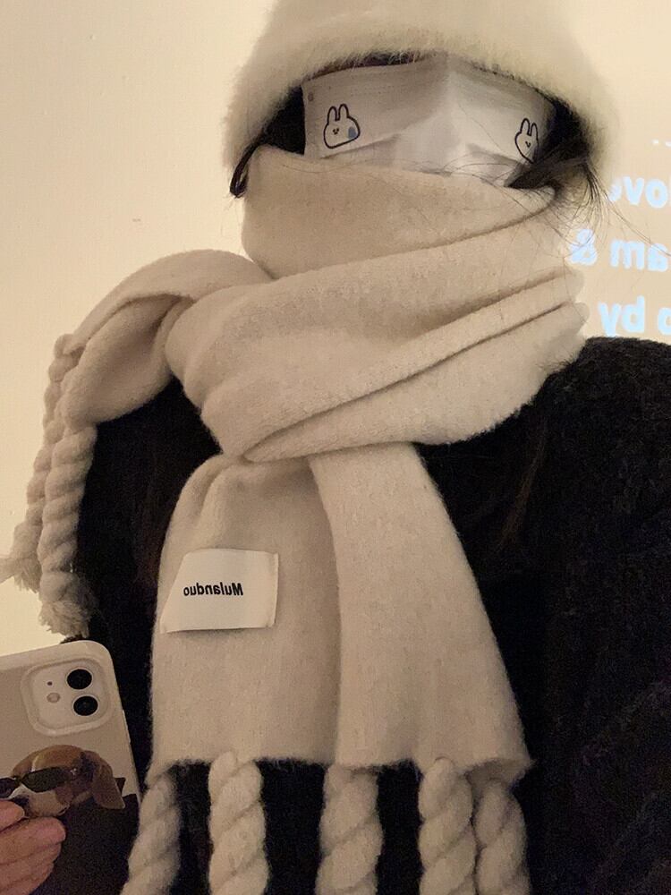 ウールスカーフレディース冬バージョンオールマッチソリッドカラー厚く暖かい2022エクスプロージョンスタイルビッグショール学生スカーフトレンドを含む ウィンター 冬物 15dd17373007230