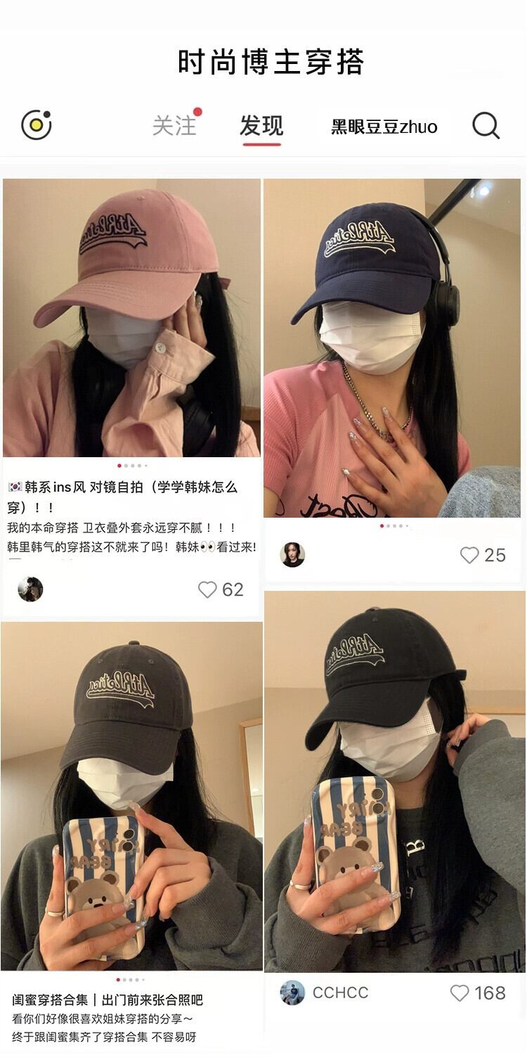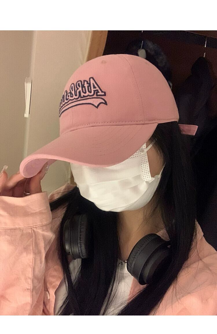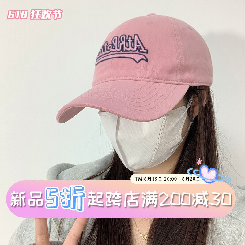 アメリカンピンクの野球帽、女性用レターウォッシュ、古いソフトトップ、カジュアルオールマッチ、顔の周りに大きな頭があり、小さなひだ付きキャップを示しています。 帽子 15dd75711296639