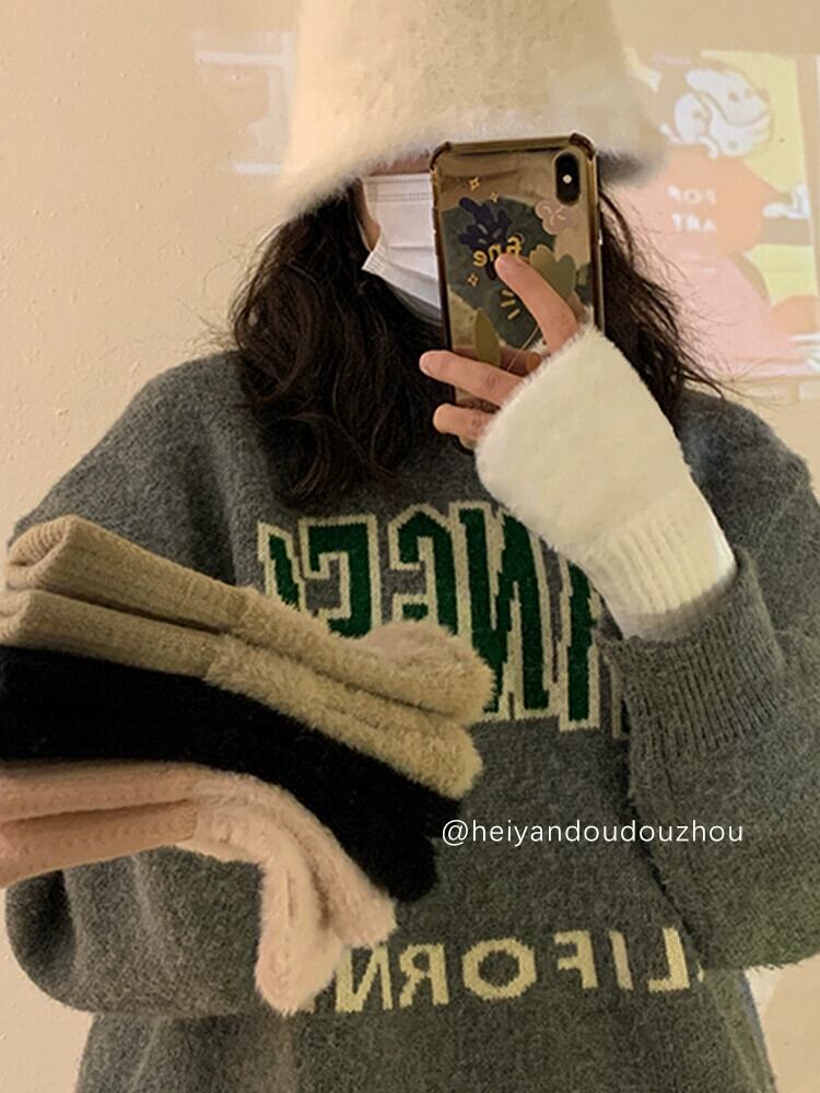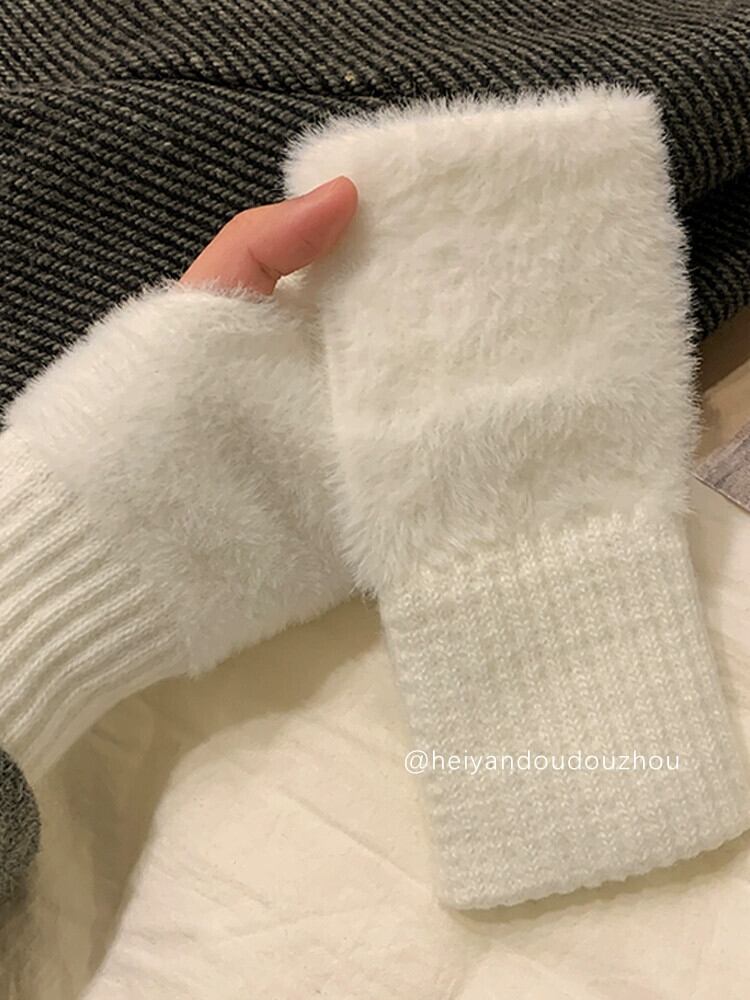暖かいウールのハーフフィンガー手袋、女性の冬用豪華なニット手首保護、行方不明の指オールマッチタッチスクリーンオフィス学生書き込み ウィンター 冬物 会社 学校 通勤や通学にも 15dd30039215725