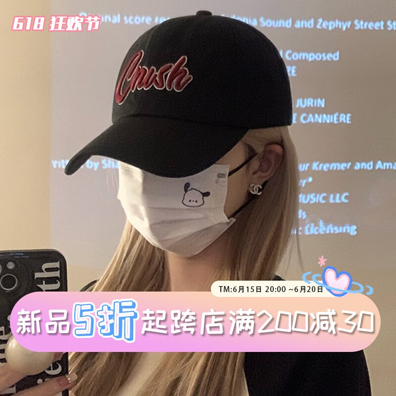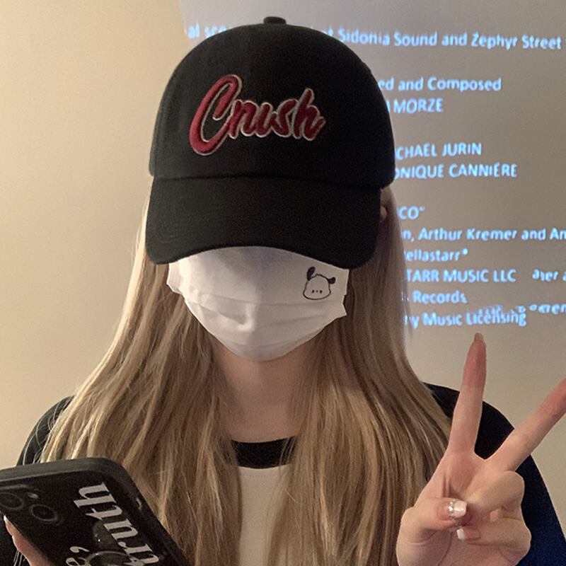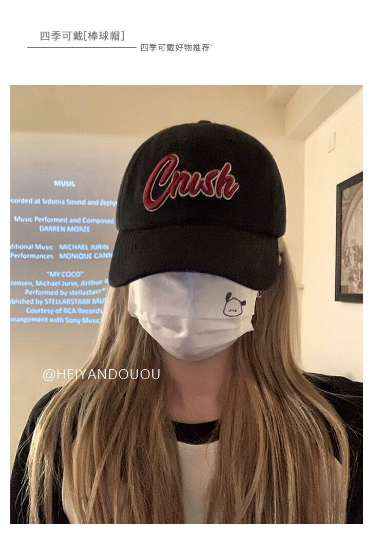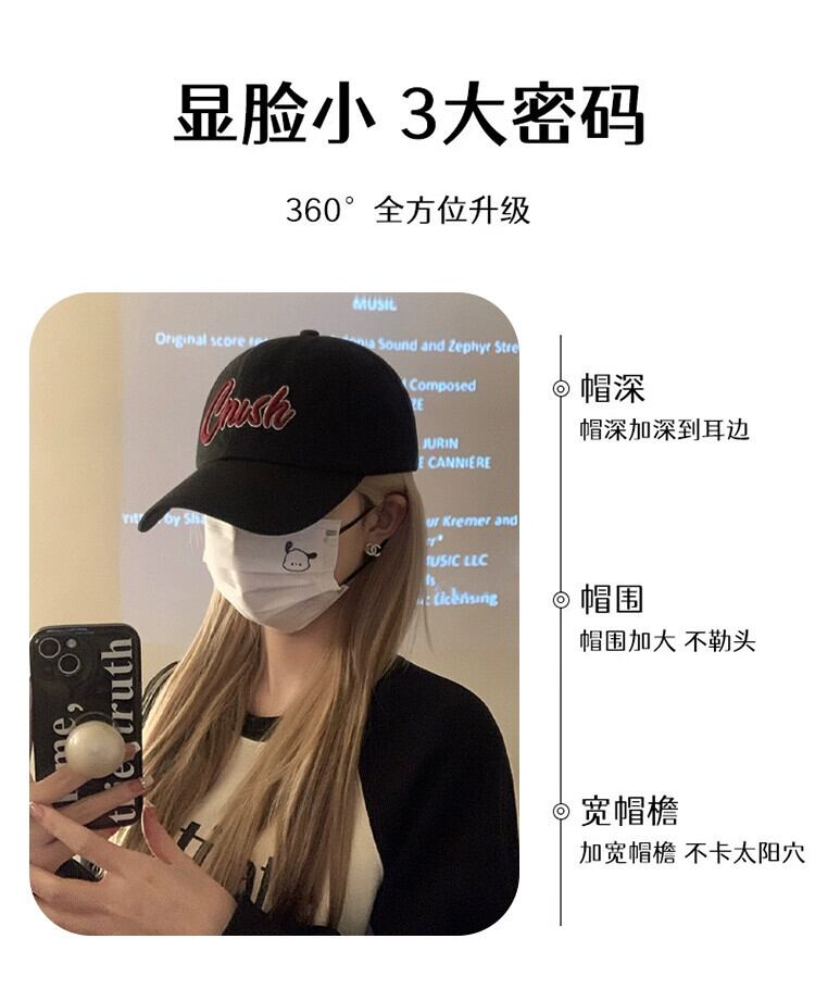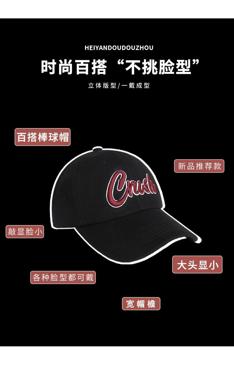 インのバージョンの刺繍黒ひさし帽子女性の新しいトレンディなブランドのカップルソフトトップつば広野球帽男性ショー小顔 ブラック 15dd87409780735