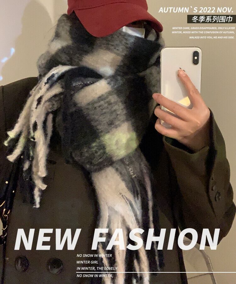 チェック柄スカーフ女性の冬 2022 新しいスタイルの雰囲気模造カシミヤ暖かいショール高度なセンス学生スカーフ ウィンター 冬物 15dd58321035214