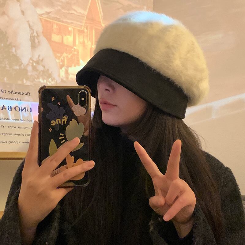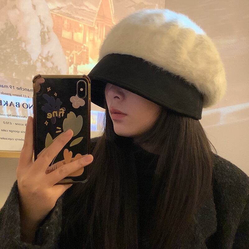 大きな頭囲ウサギの毛皮の帽子女性の秋と冬のファッションオールマッチショーフェイス小さな ese 豪華な暖かい耳保護漁師の帽子 オータム 秋物 ウィンター 冬物 15dd89897507588
