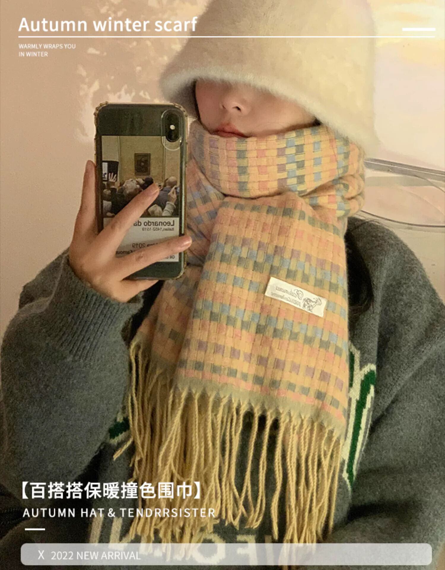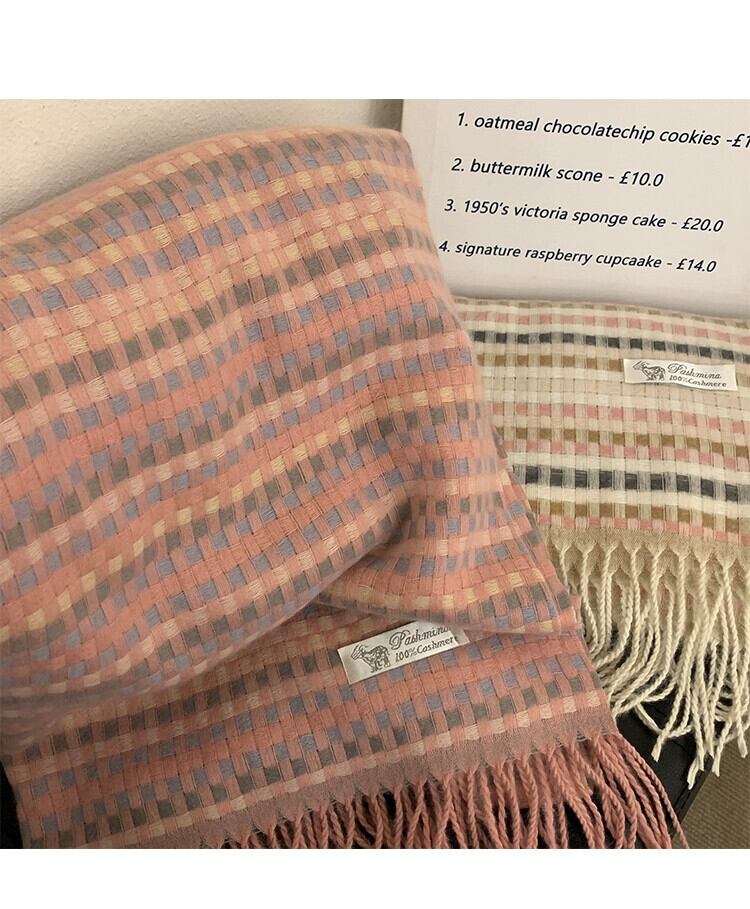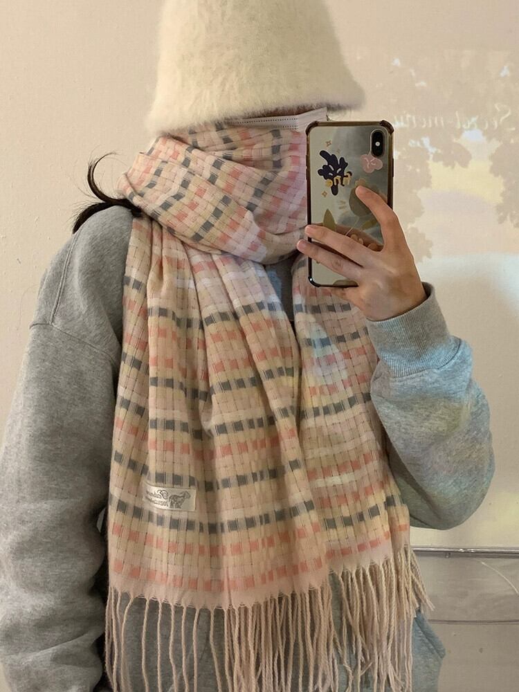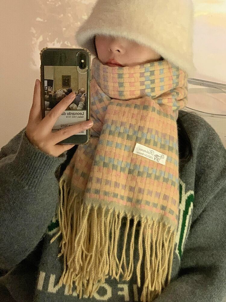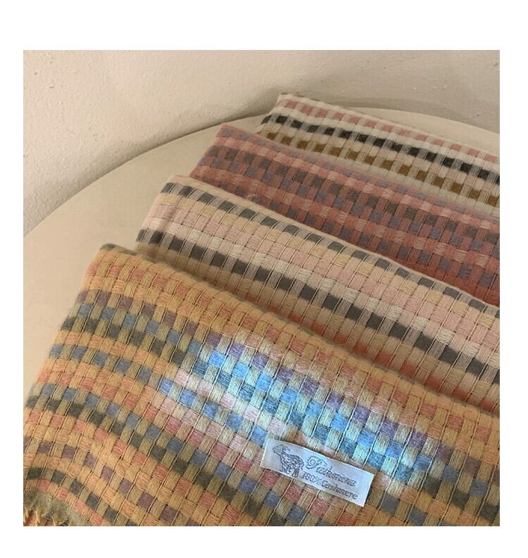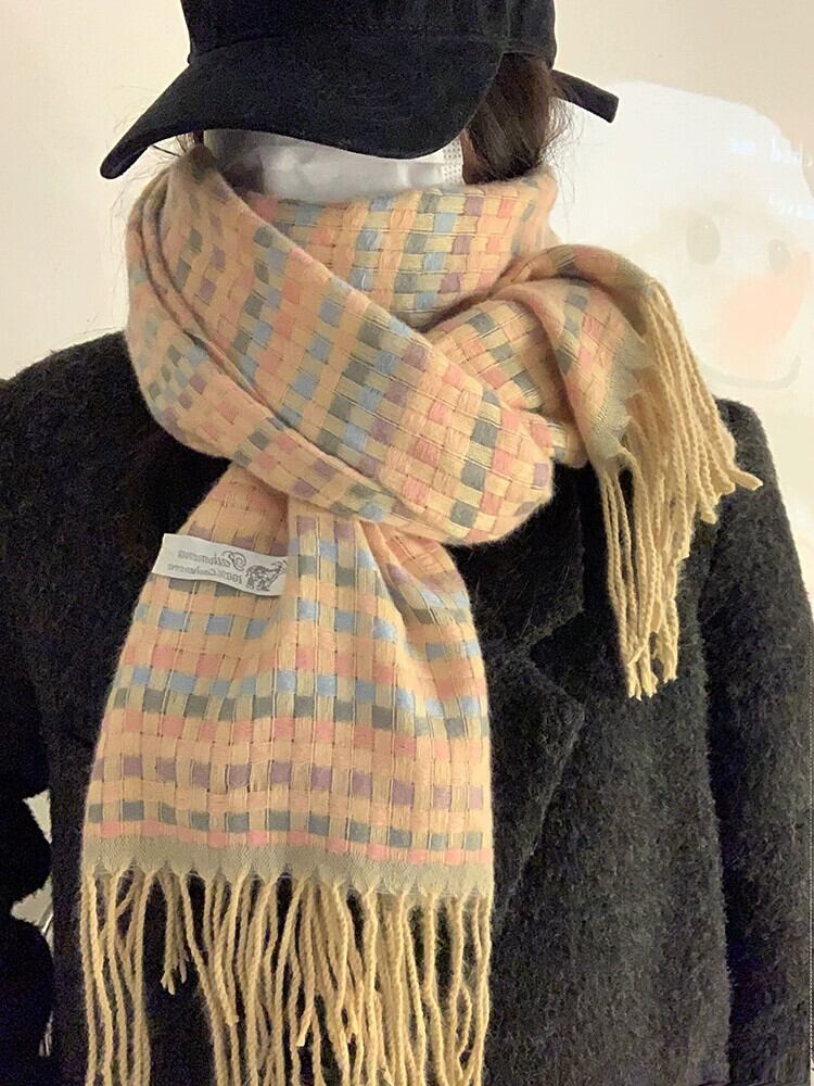 スカーフ女性の冬 ese レトロソフトワックス状オールマッチレインボーチェック柄模造カシミヤ学生ニットカップルスカーフ ウィンター 冬物 15dd68516454012