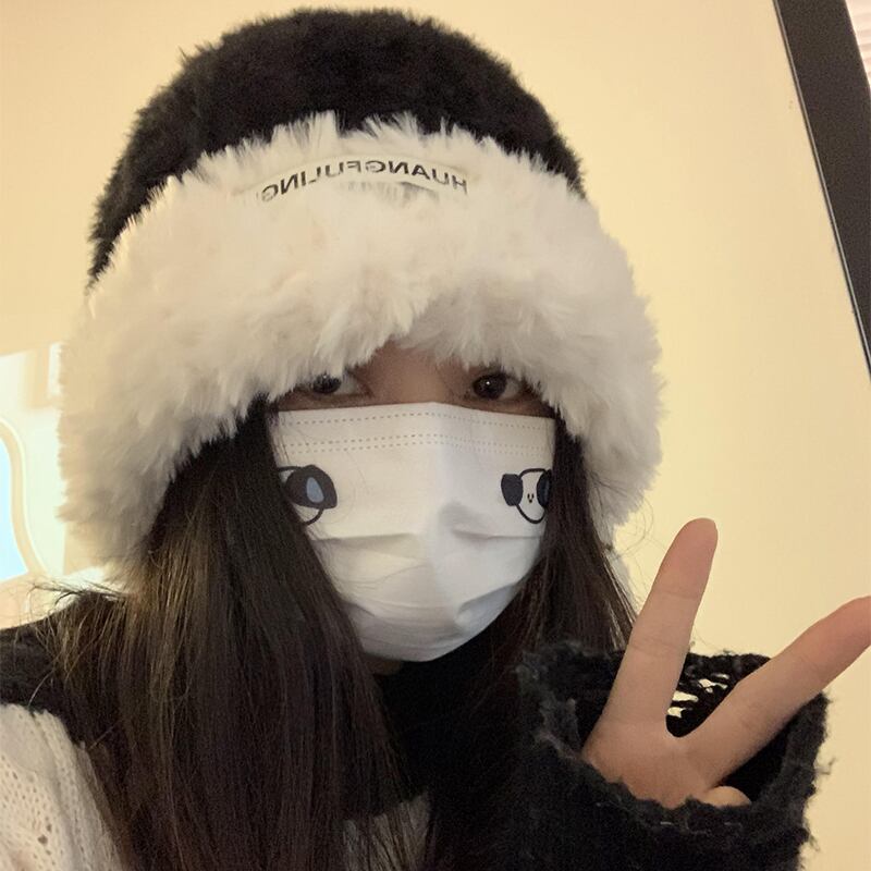 帽子女性の冬肥厚顔小さな豪華な暖かいウールの帽子トレンディな大きな頭の周りの耳の保護パイルパイルニット帽子 ウィンター 冬物 15dd21281262480