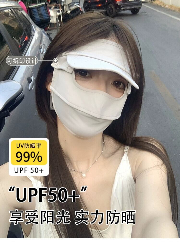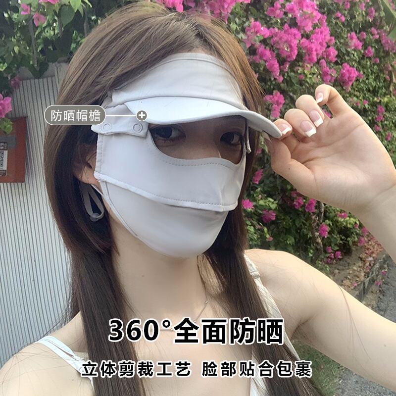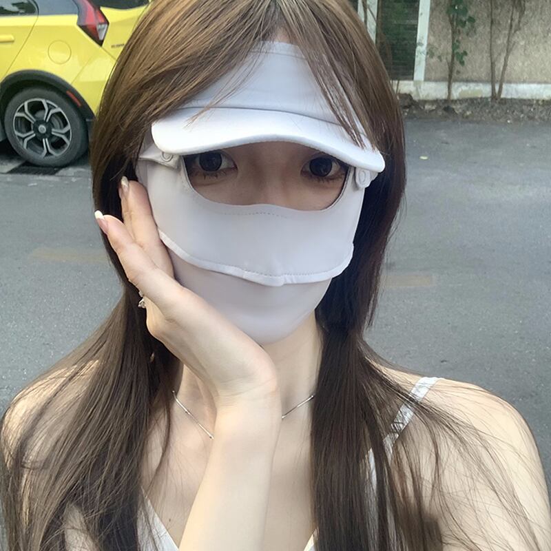 フルフェイス日焼け止めマスク抗紫外線フェイスキニアイスシルクマスクつば付き夏運転通気性薄型マスク サマー 夏物 15dd15670502388