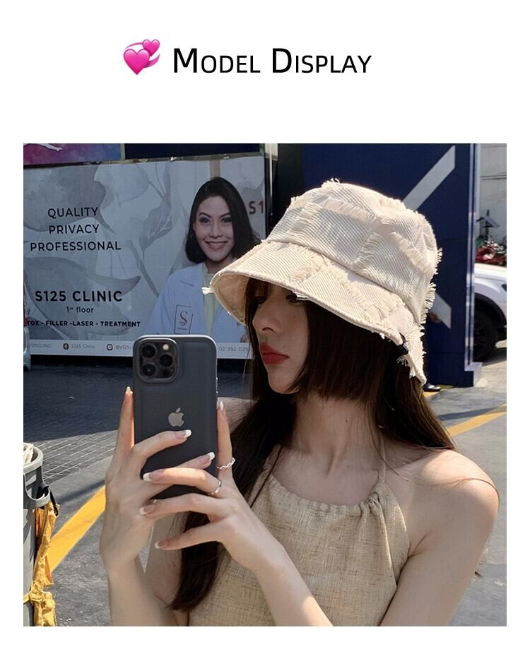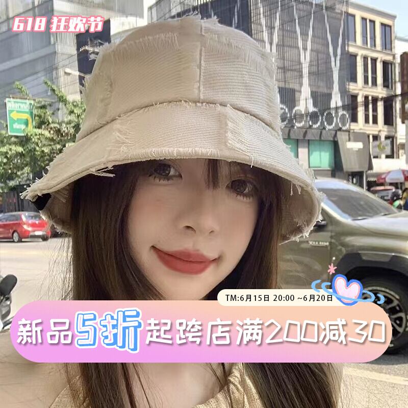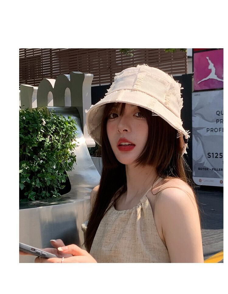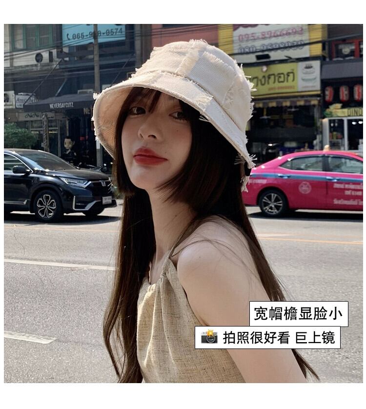 ese レトロなラフエッジ漁師帽子女性の春と夏のカジュアルオールマッチショーフェイス小さなバケツ洗面器帽子カバーフェイス日焼け止め帽子 スプリング 春物 サマー 夏物 15dd71075438427