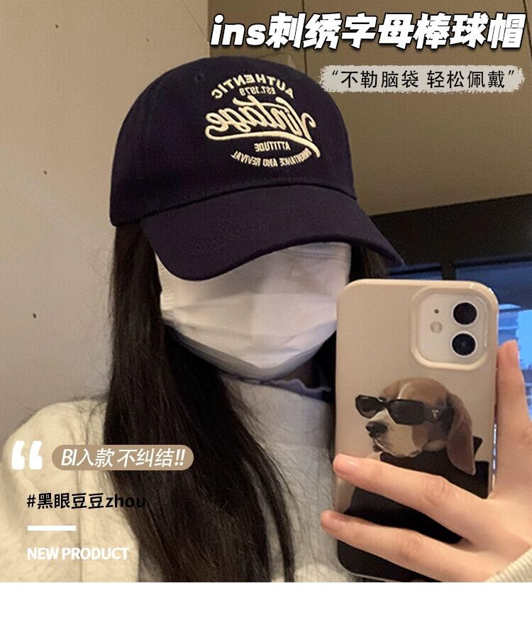アメリカンレトロソフトトップ文字刺繍野球帽女性の新しいカジュアルオールマッチ大きな頭囲ひさしキャップ男性小顔見せ 15dd24014644208