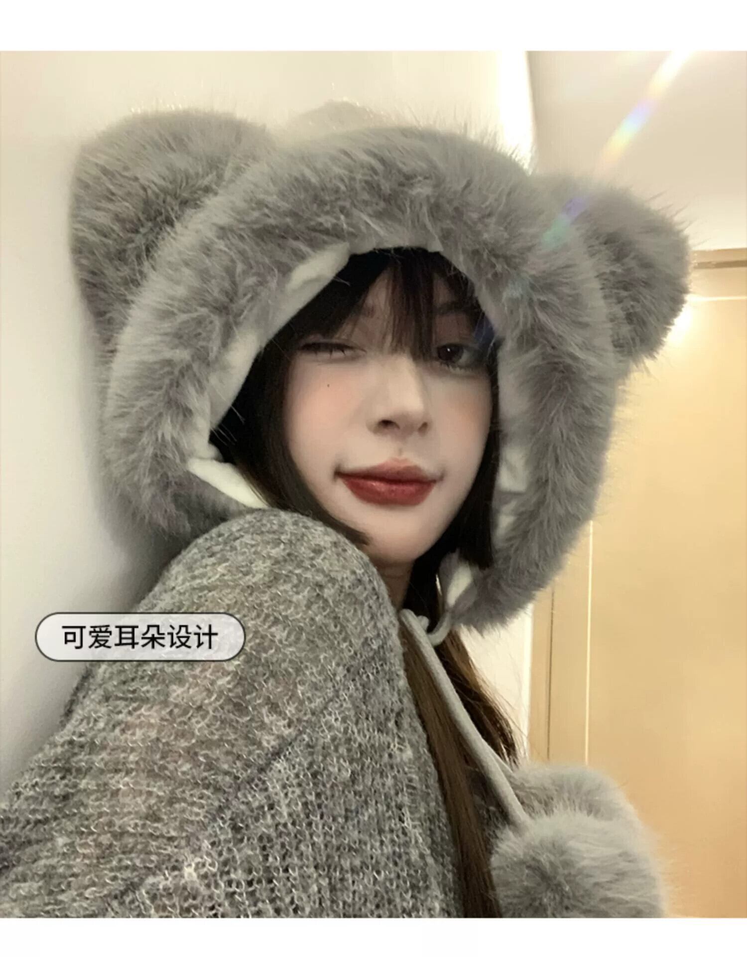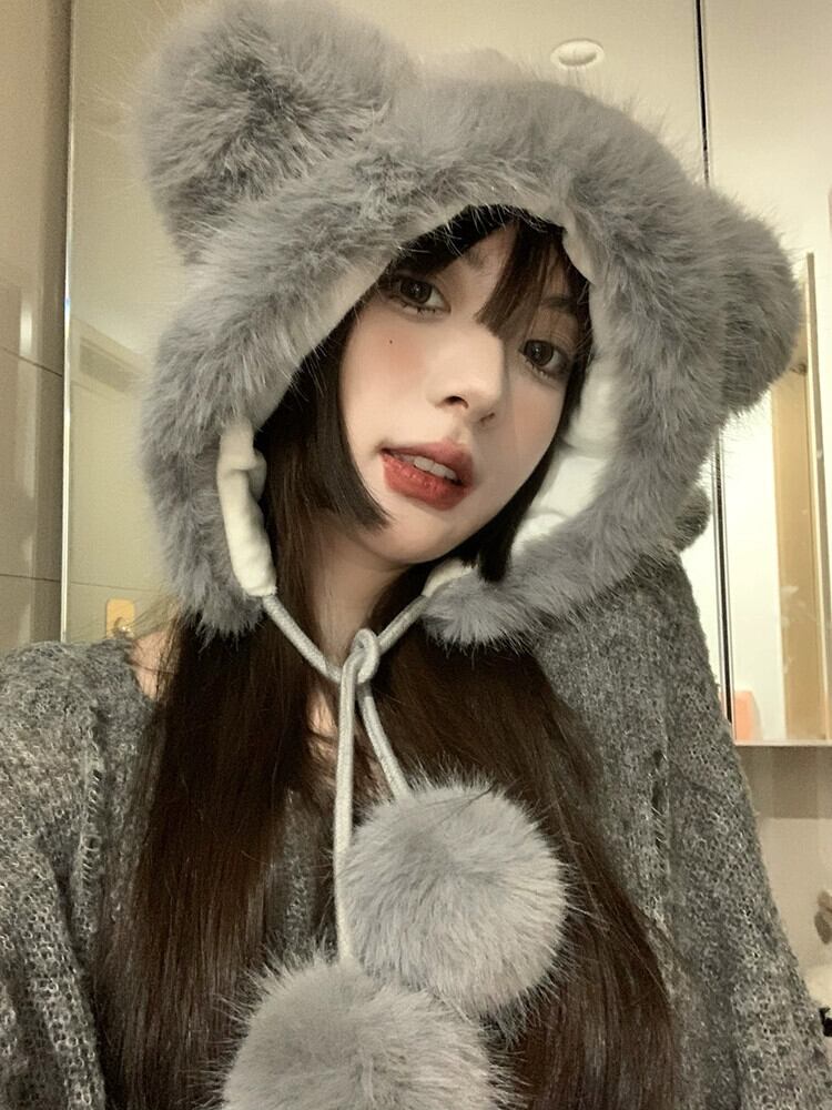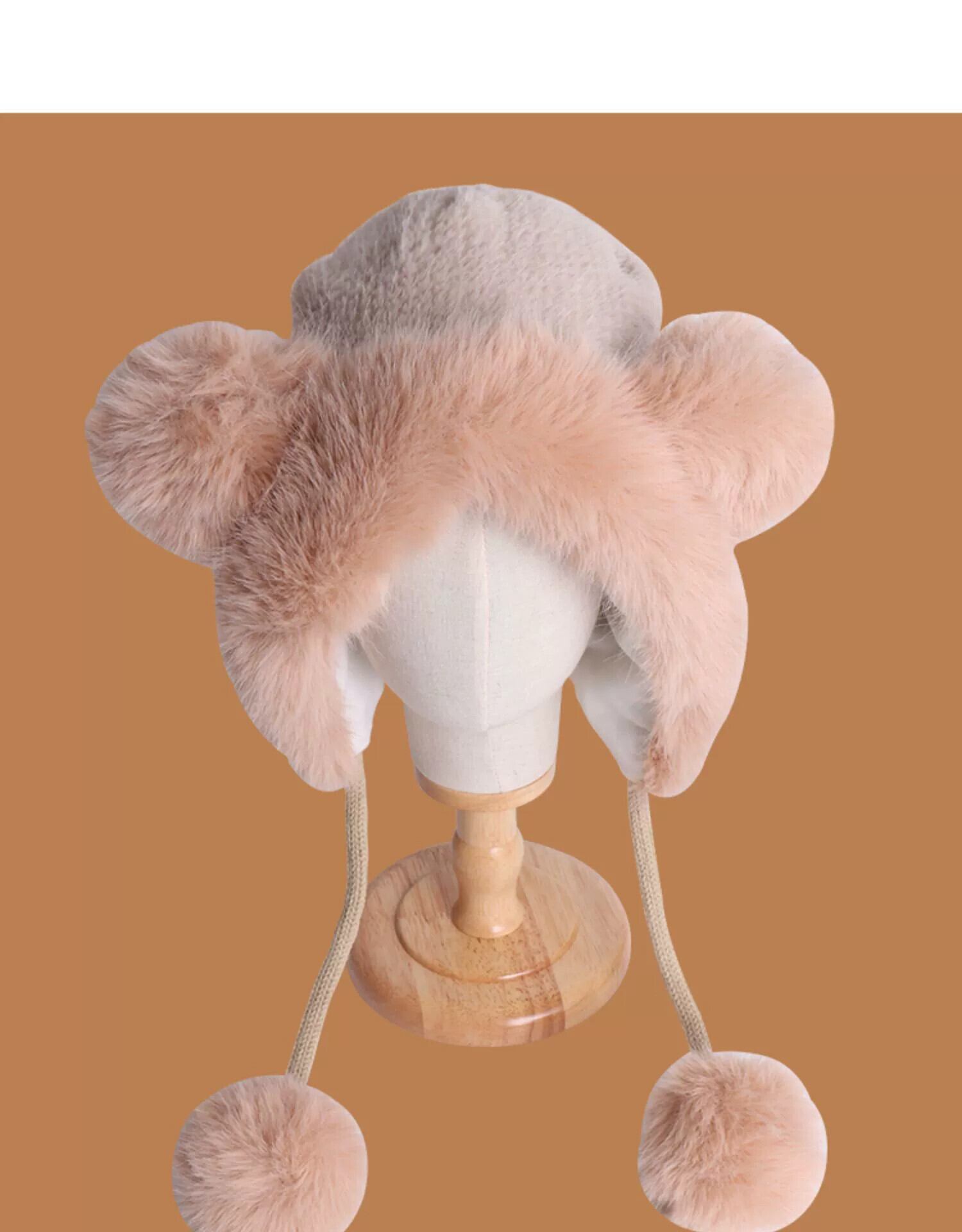 甘くてかわいいクマの耳豪華なニット雷峰帽子女性の冬暖かく防寒プラスベルベット耳保護帽子 大人ガーリー スウィート キュート カジュアル ウィンター 冬物 15dd78155714676