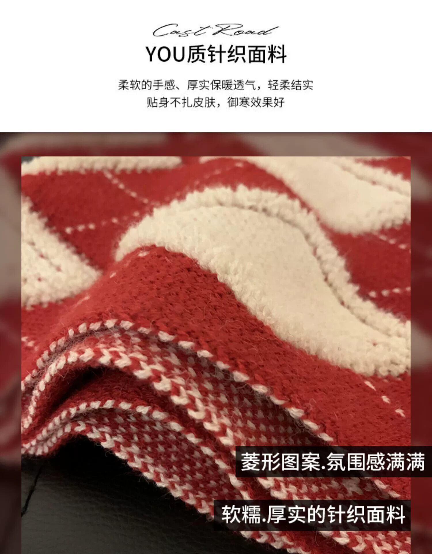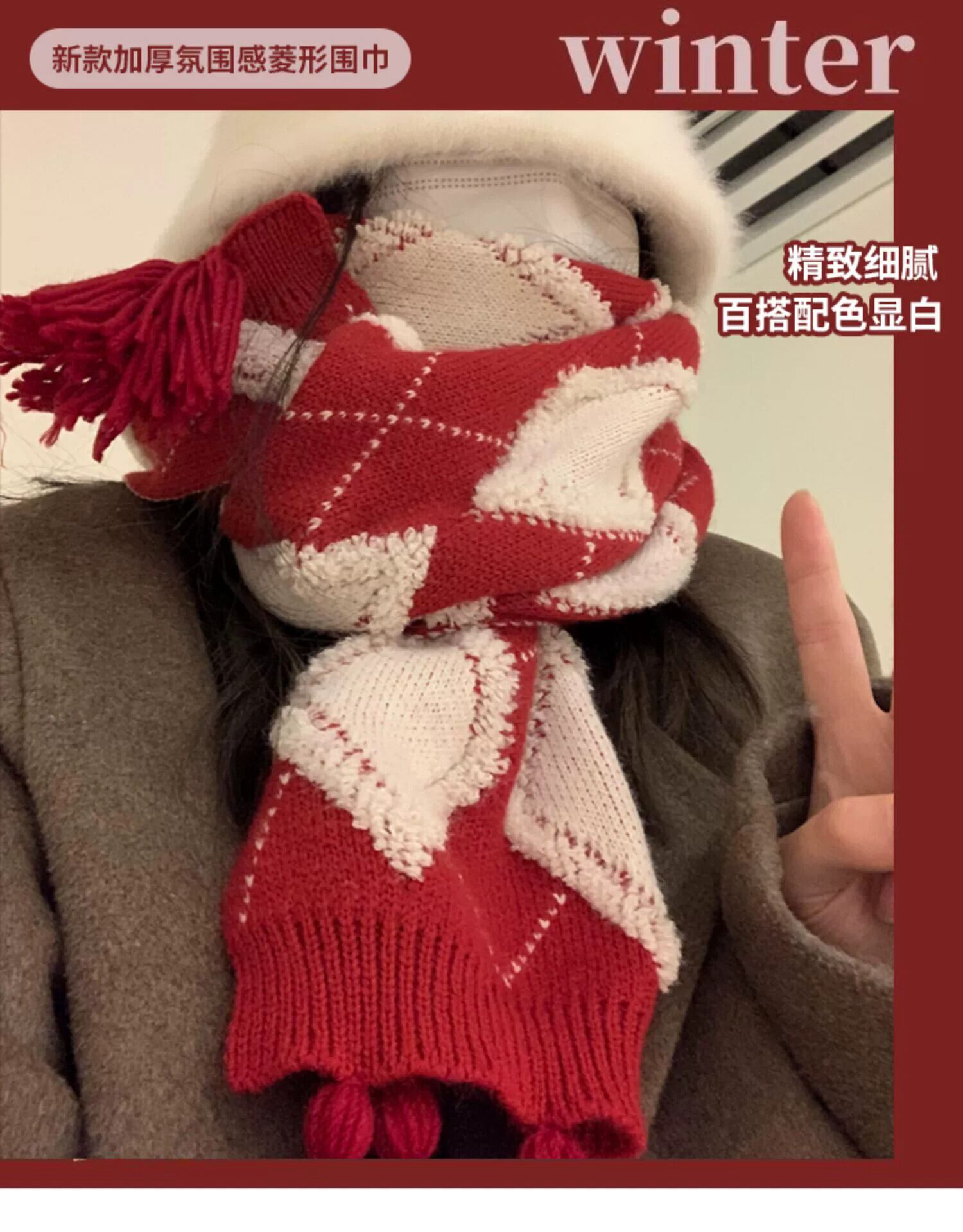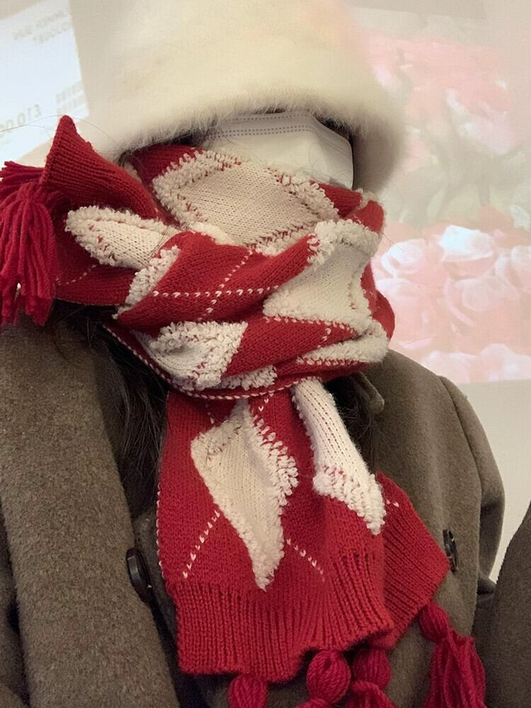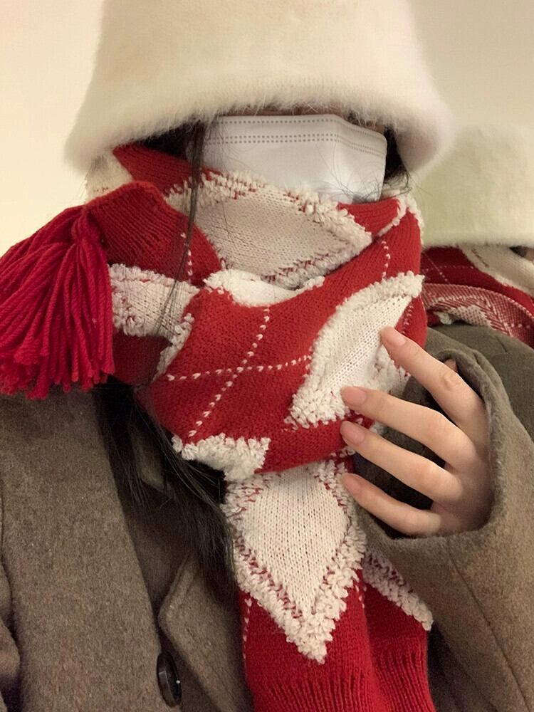 赤いチェック柄ウールニットスカーフ女性の冬バージョンのインオールマッチスカーフ暖かいロングセクションライトエンカウント同じ レッド ウィンター 冬物 15dd98670454153