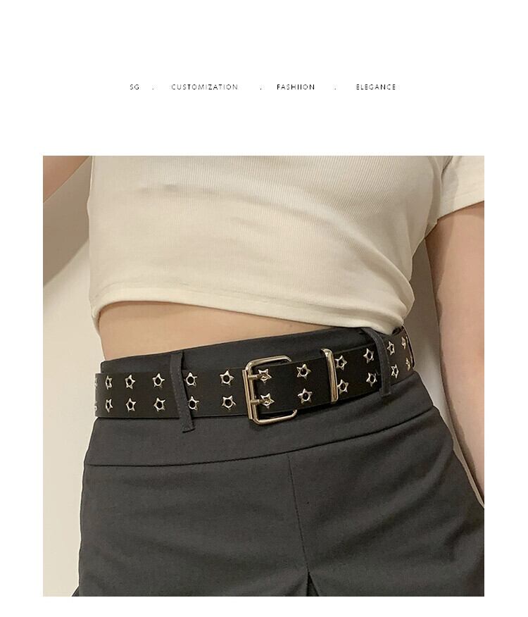 スターダブルブレストベルトレディースイン装飾パンクスタイルレトロ新しいハイエンドセンス個性フリーパンチングベルト ハーネス 15dd98217544798
