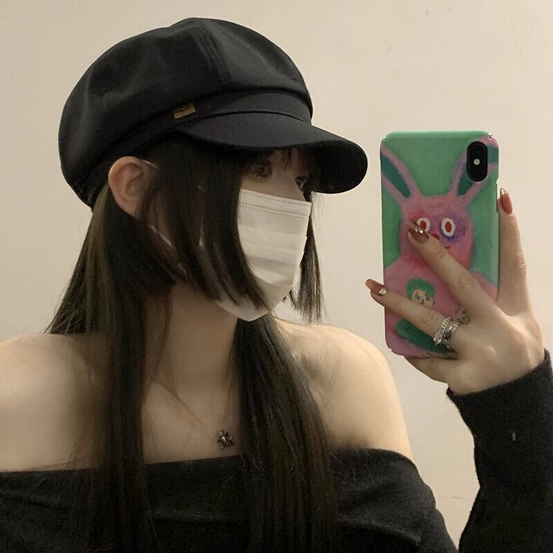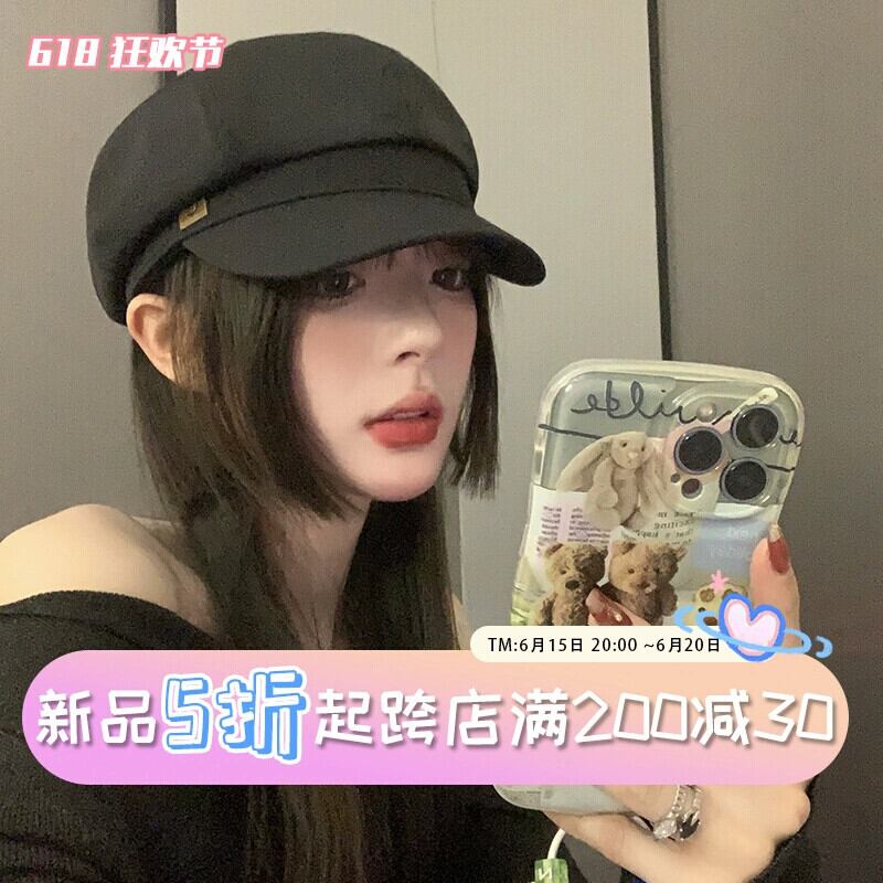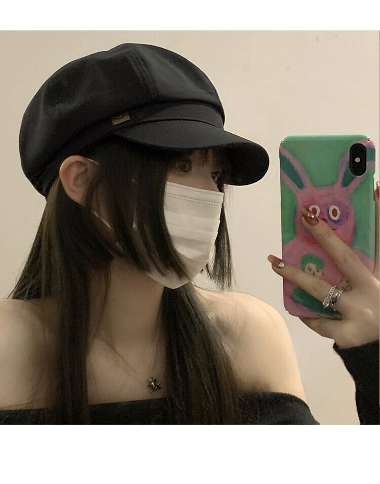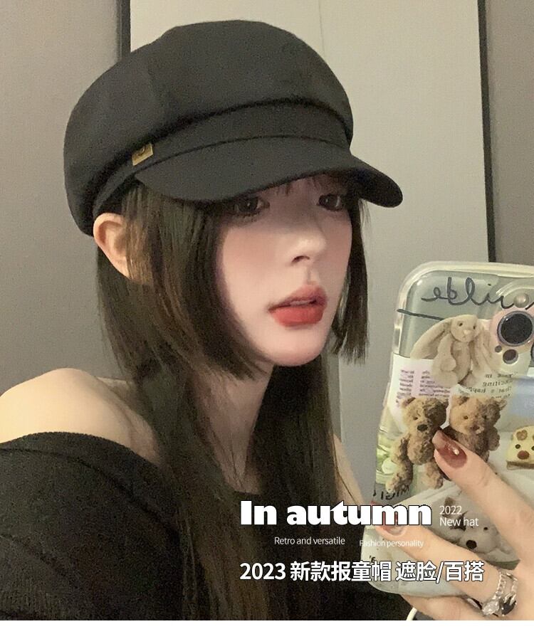 八角形帽子女性の春と秋オールマッチブラックフェイス小さなレトロな帽子トレンディな秋と冬カジュアル大きな頭囲アヒル舌ベレー帽 スプリング 春物 オータム 秋物 ウィンター 冬物 ベレット ヘアアクセサリー 15dd77839099223