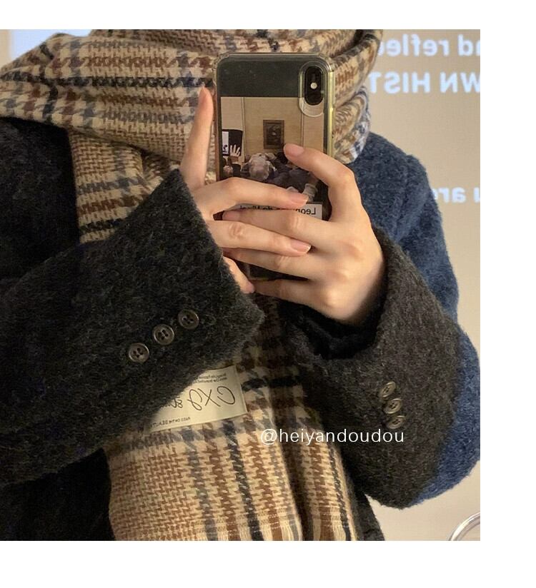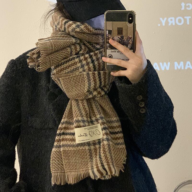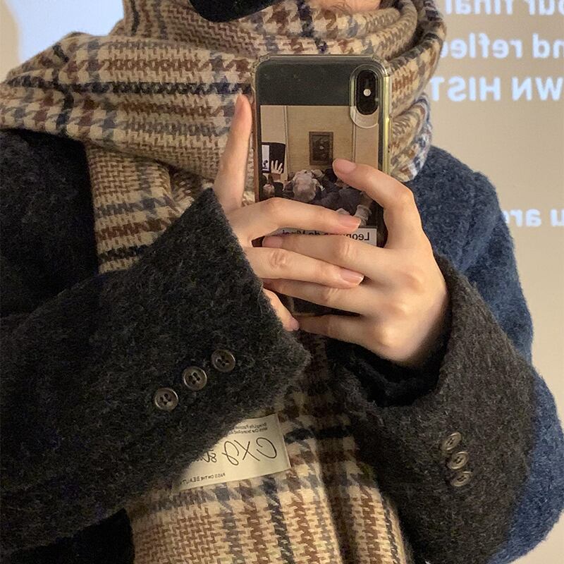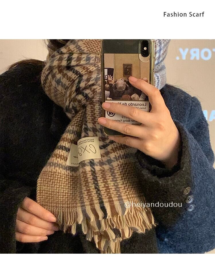 レトロ千鳥格子スカーフ女性の冬 2022 新バージョンオールマッチ模造カシミヤショール学生暖かいスカーフトレンド ウィンター 冬物 15dd25927435057
