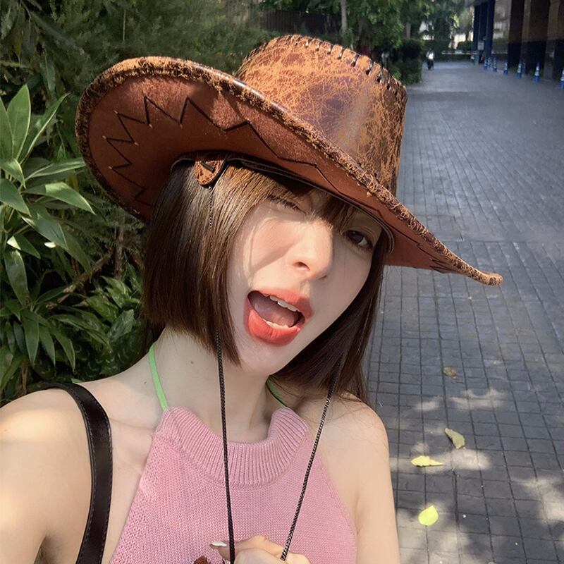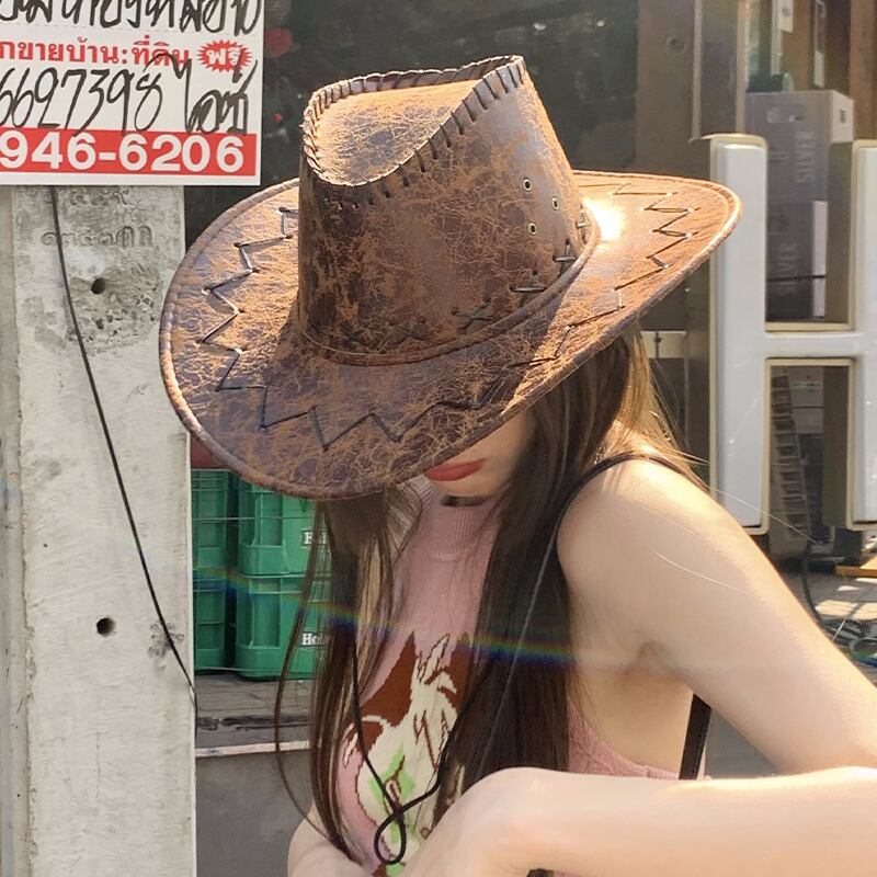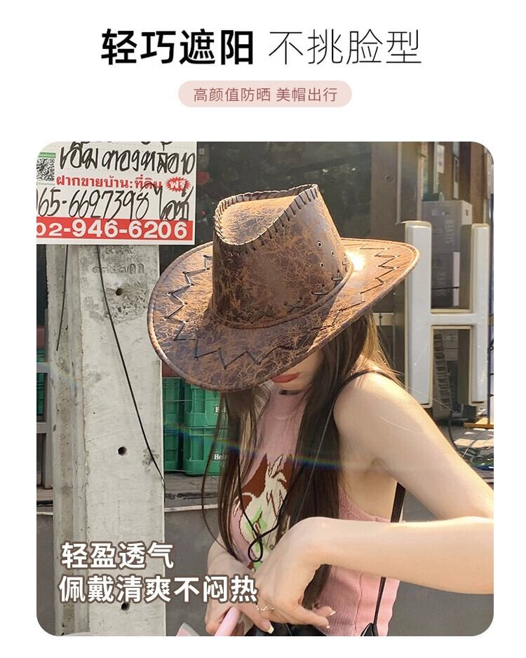 ウエスタンカウボーイハット女性の夏の日焼け防止帽子アメリカンレトロ大きな軒ビーチビーチサンハット旅行 サマー 夏物 15dd86380480926