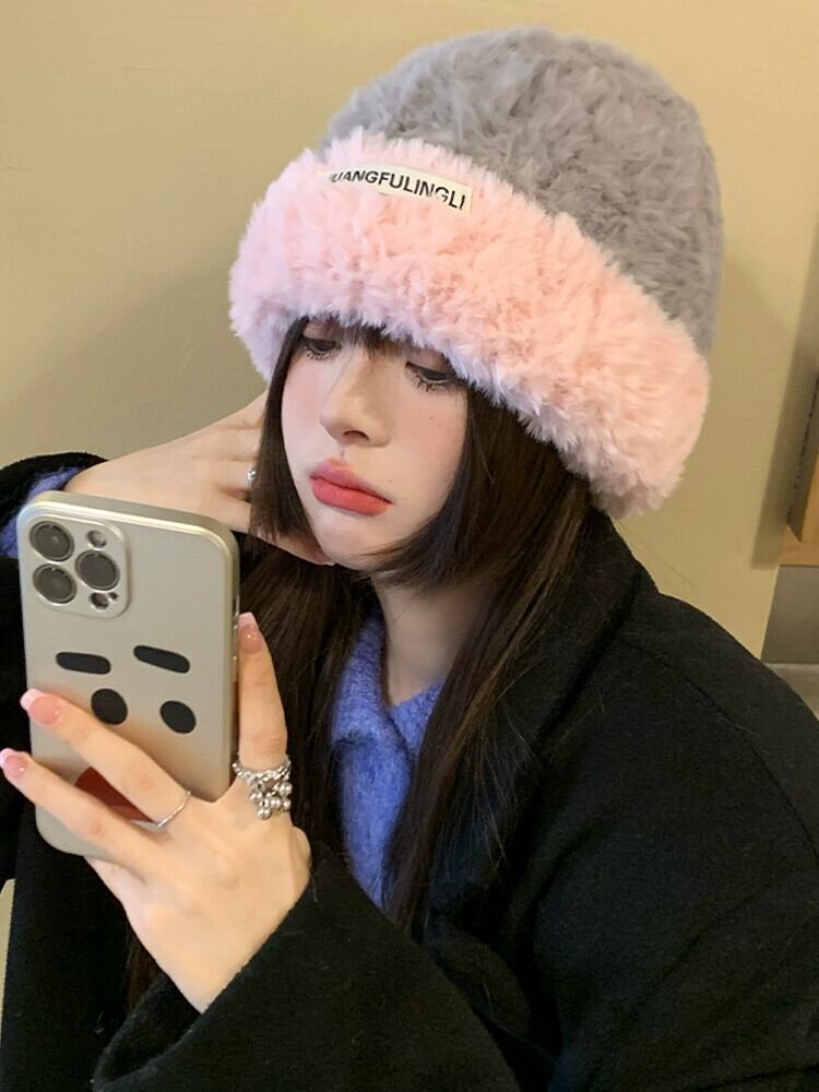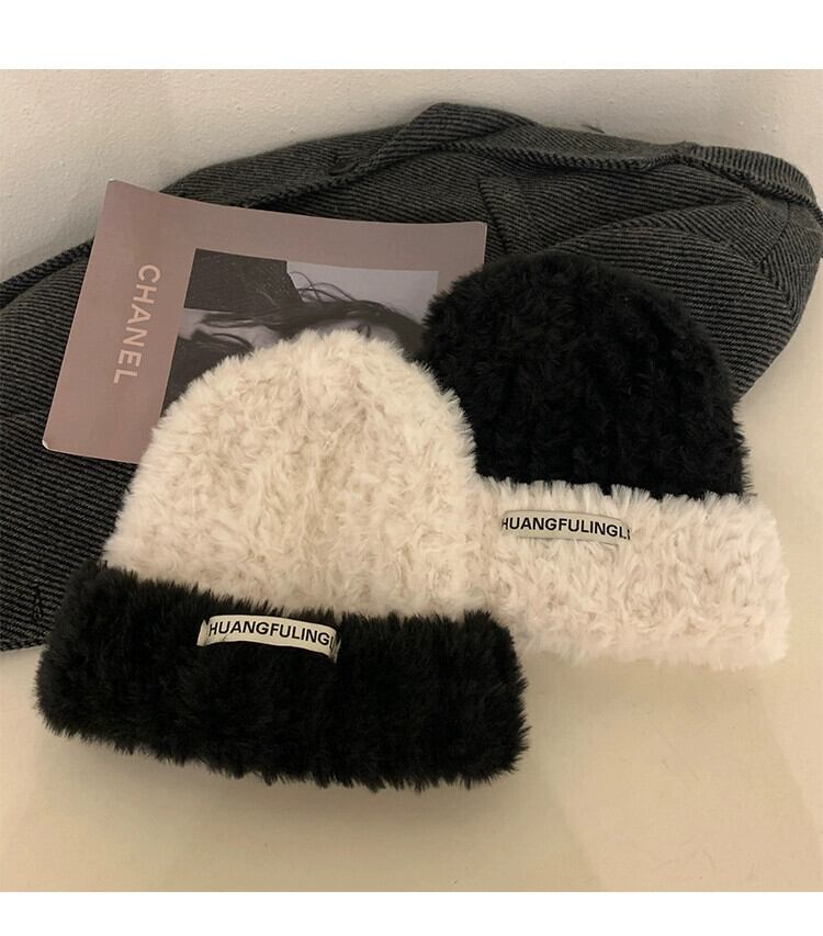 ウール帽子女性の冬の大きな頭囲プラスベルベット肥厚オールマッチニットバッグヘッドショー顔小さな暖かい豪華なコールドハットトレンディ ウィンター 冬物 15dd86996632230