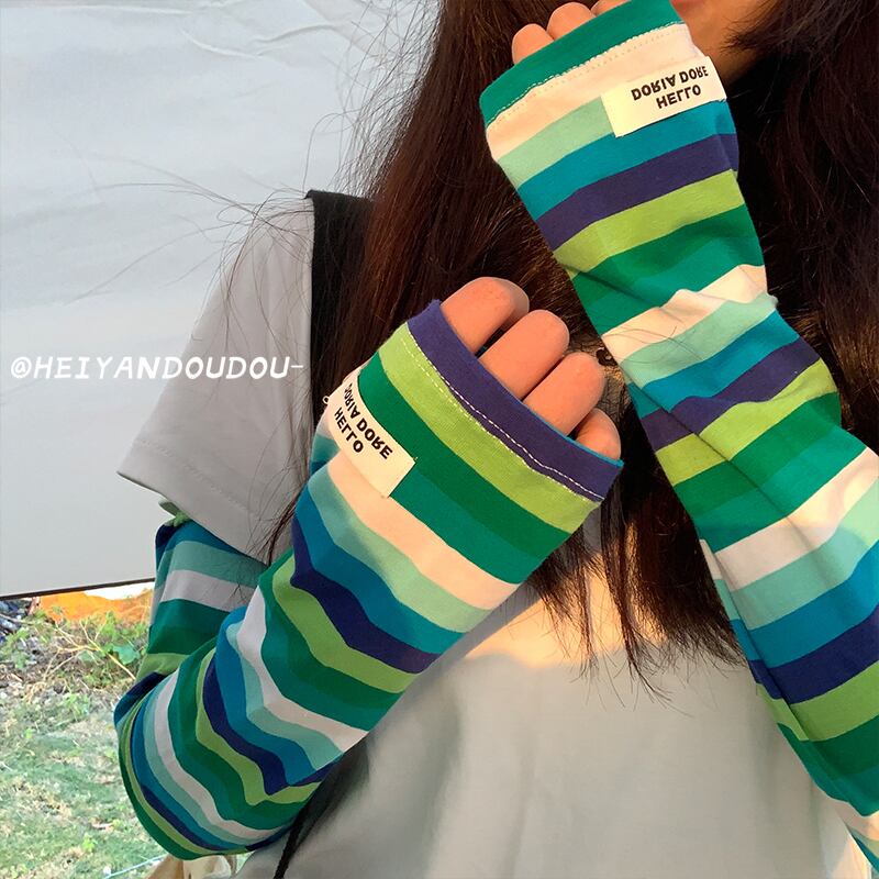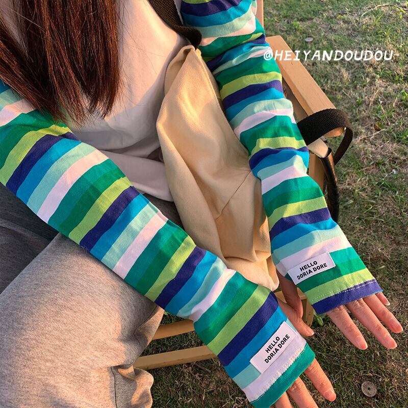 綿ストライプ緩い大きいサイズ夏運転日焼け止めスリーブ女性 uv 抗紫外線アイススリーブアームスリーブ コットン 大きめサイズ サマー 夏物 15dd81498867007