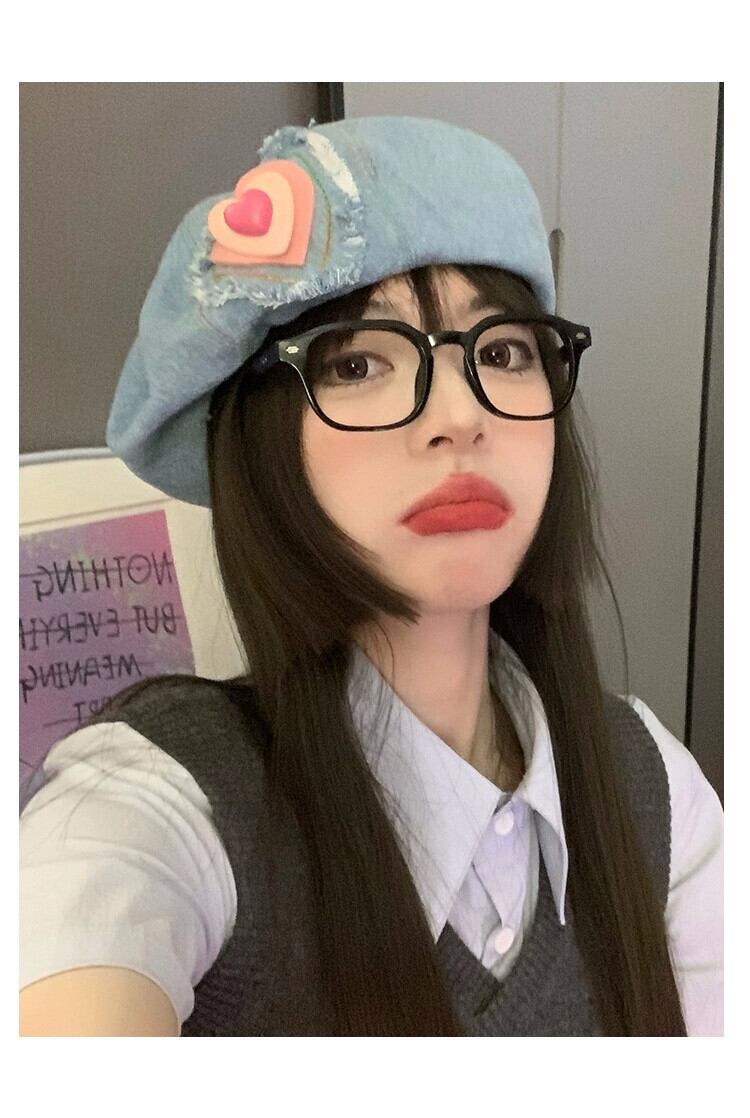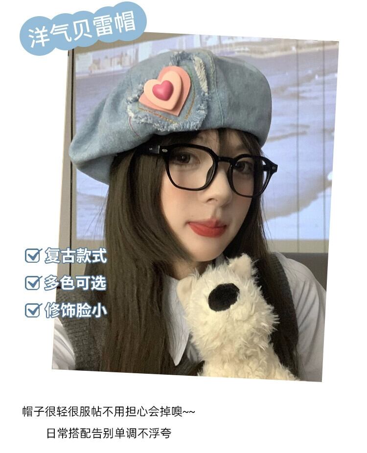 甘くてかわいいデニムベレー帽レディース春夏旅行シンプルオールマッチショーフェイススモールラブネットレッドクラウドハット 帽子 大人ガーリー スウィート キュート カジュアル スプリング 春物 サマー 夏物 ベレット ヘアアクセサリー 15dd36357720611