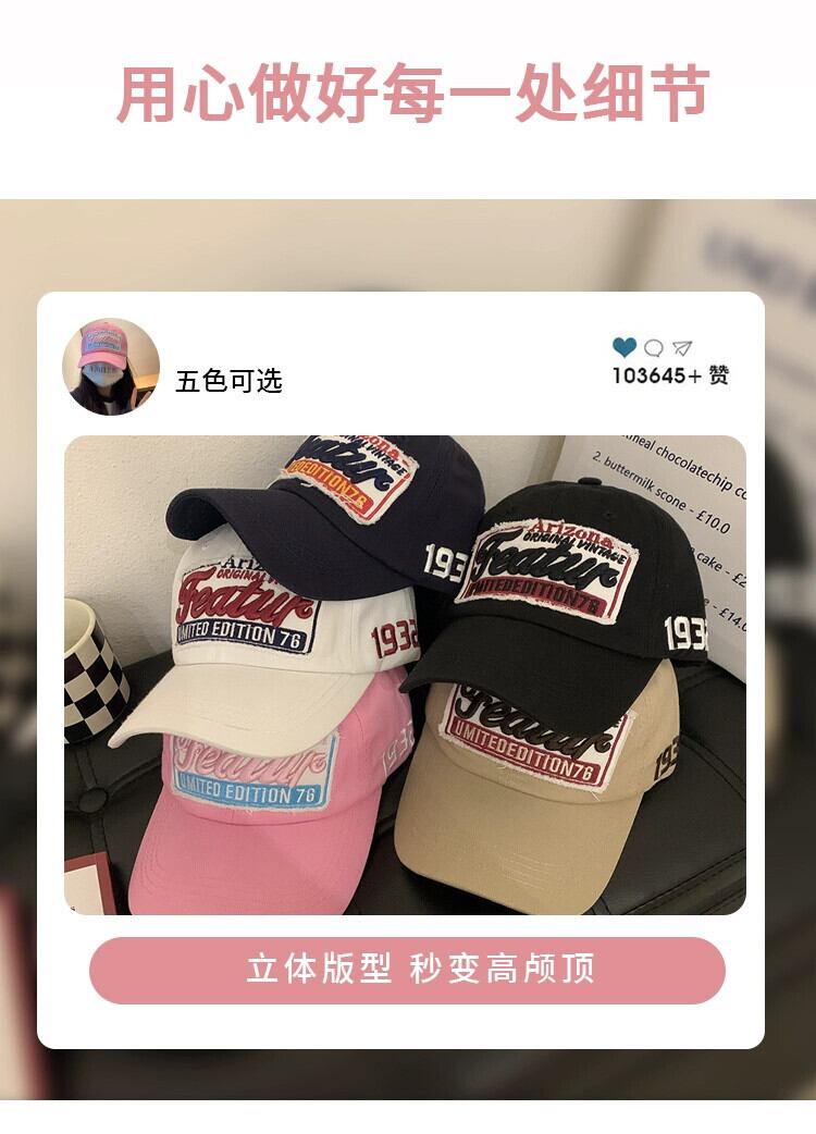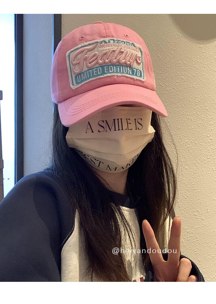 古いニッチなレトロなひさしキャップ女性のソフトトップ日焼け止め帽子アメリカン刺繍文字ベースボールキャップ小顔を見せます 15dd4382832149