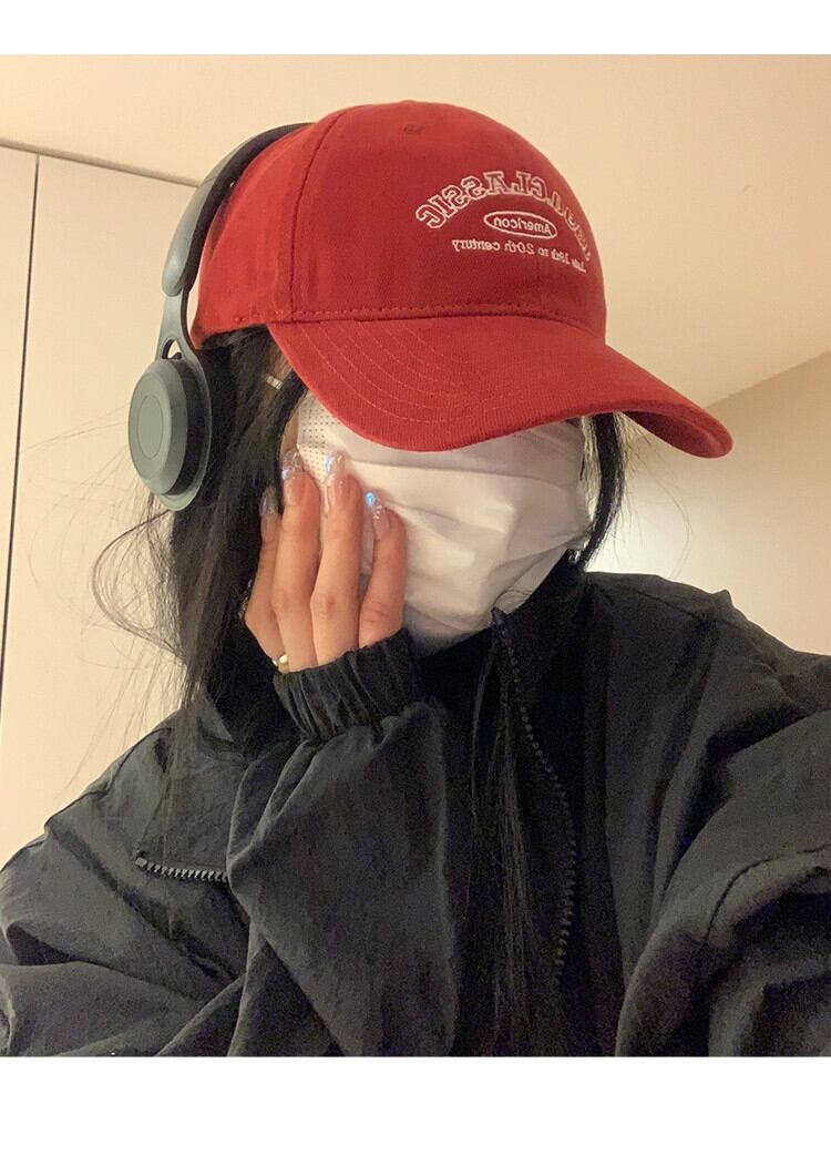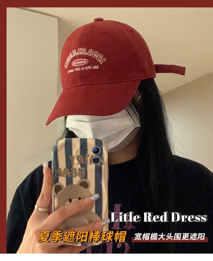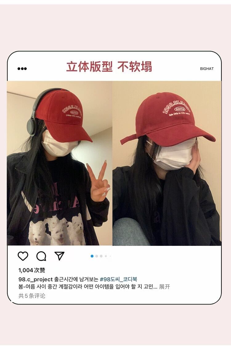 アルファベットベースボールキャップ女性ディープトップビッグ頭囲レトロオールマッチキャップレッドワイドつば見せ顔小さな帽子サンシェード 15dd13029540768