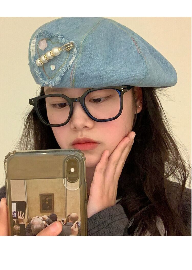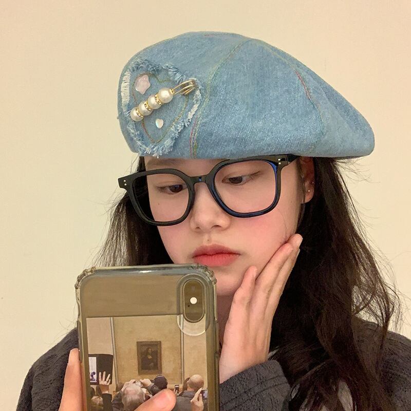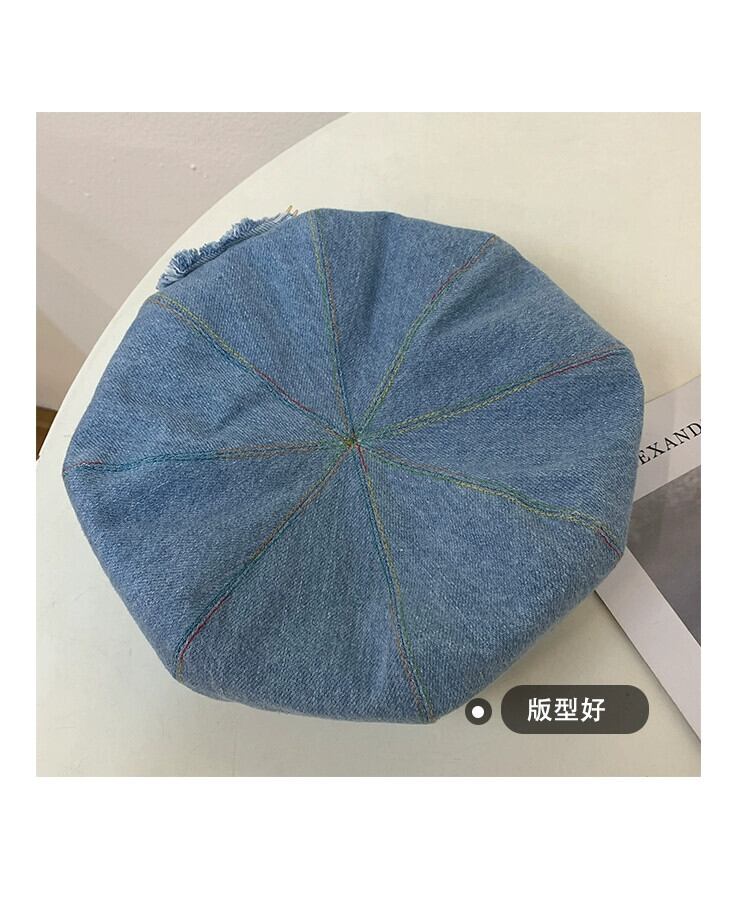 大きな頭囲デニムインベレー帽女性ショー顔野生オリジナル帽子レトロ雲八角形帽子潮の小さいバージョン ベレット ヘアアクセサリー 15dd77624915157