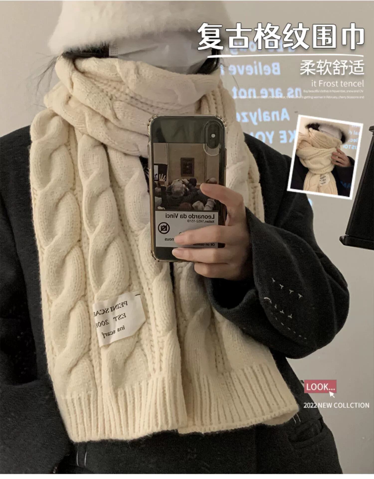 スカーフ女性の冬の白バージョンオールマッチ学生かわいいイン高品質ニットウール暖かいスカーフ ホワイト 大人ガーリー スウィート キュート カジュアル ウィンター 冬物 15dd66882706978