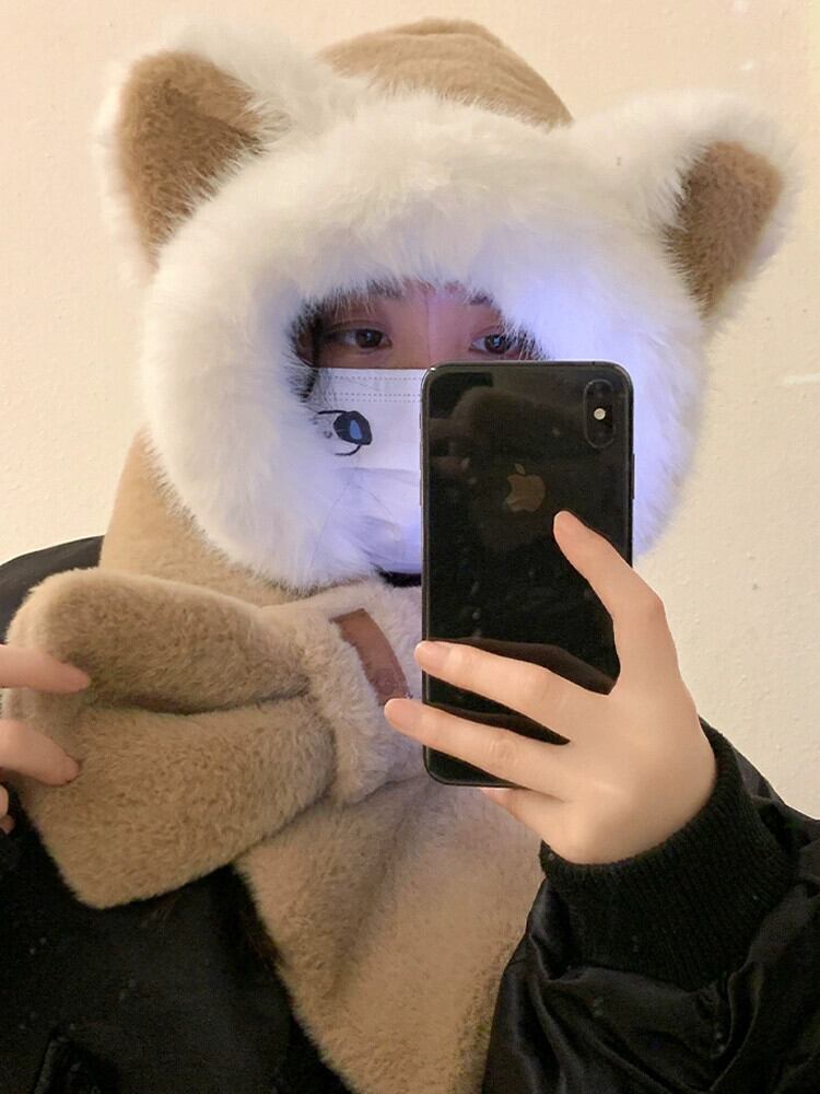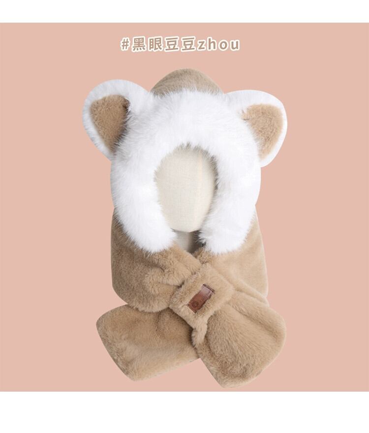 かわいいクマの耳ぬいぐるみ暖かい雷峰帽子女性のシーズンプラスベルベット厚い乗馬イヤーマフ帽子スカーフ 大人ガーリー スウィート キュート カジュアル 15dd52945774454