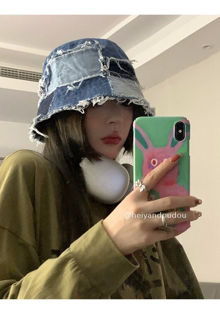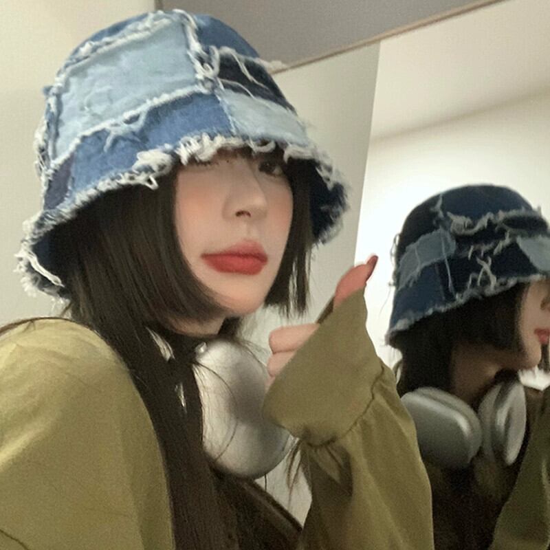 ニッチなデザインセンスのカウボーイ漁師帽子女性の新しいカジュアルオールマッチスプライシングエッジ盆地帽子顔小潮を表示 15dd61912479411