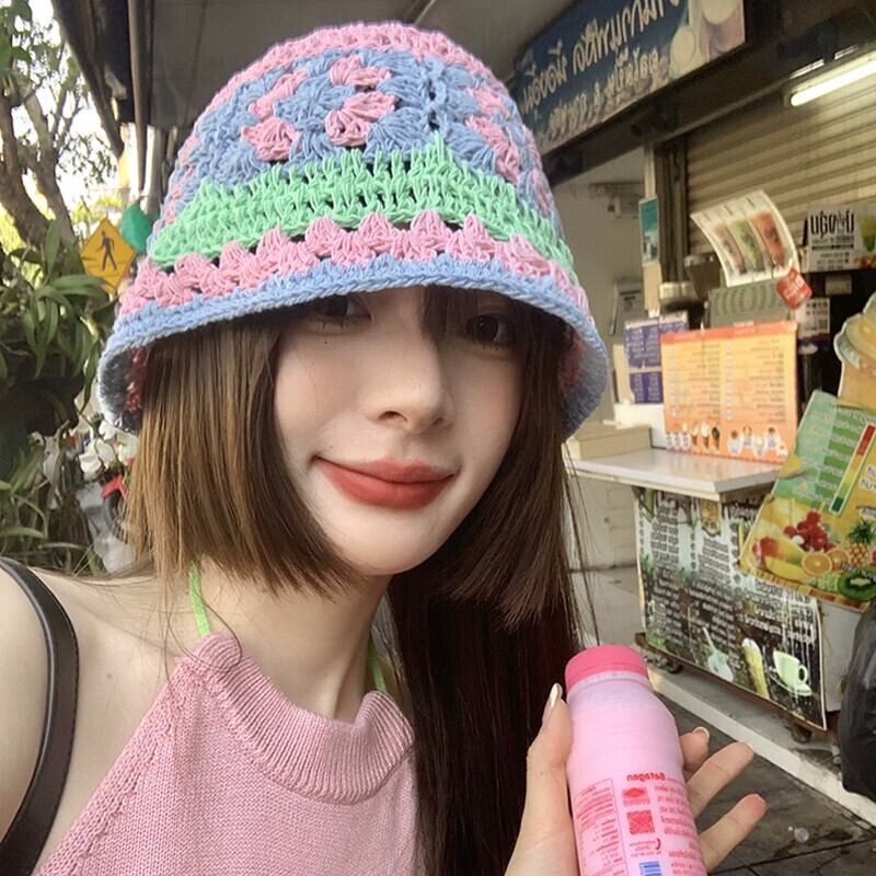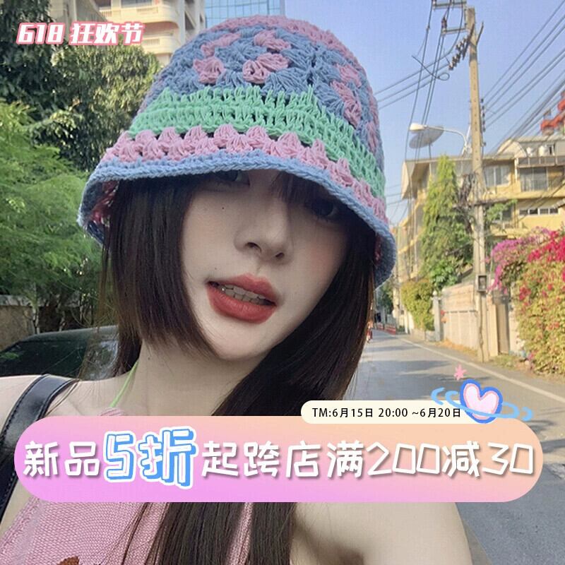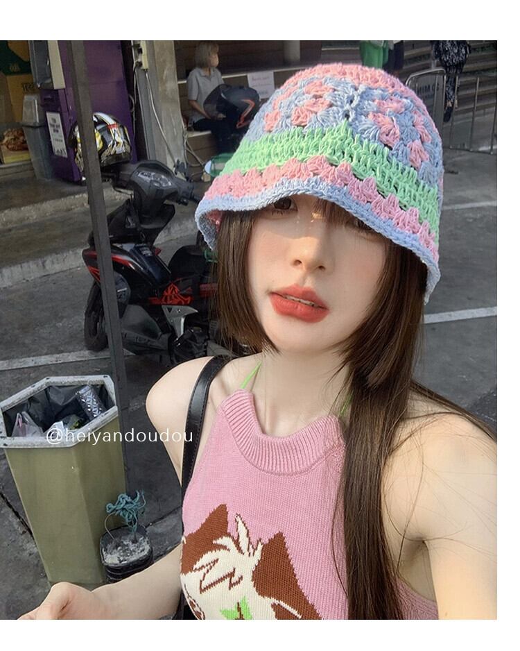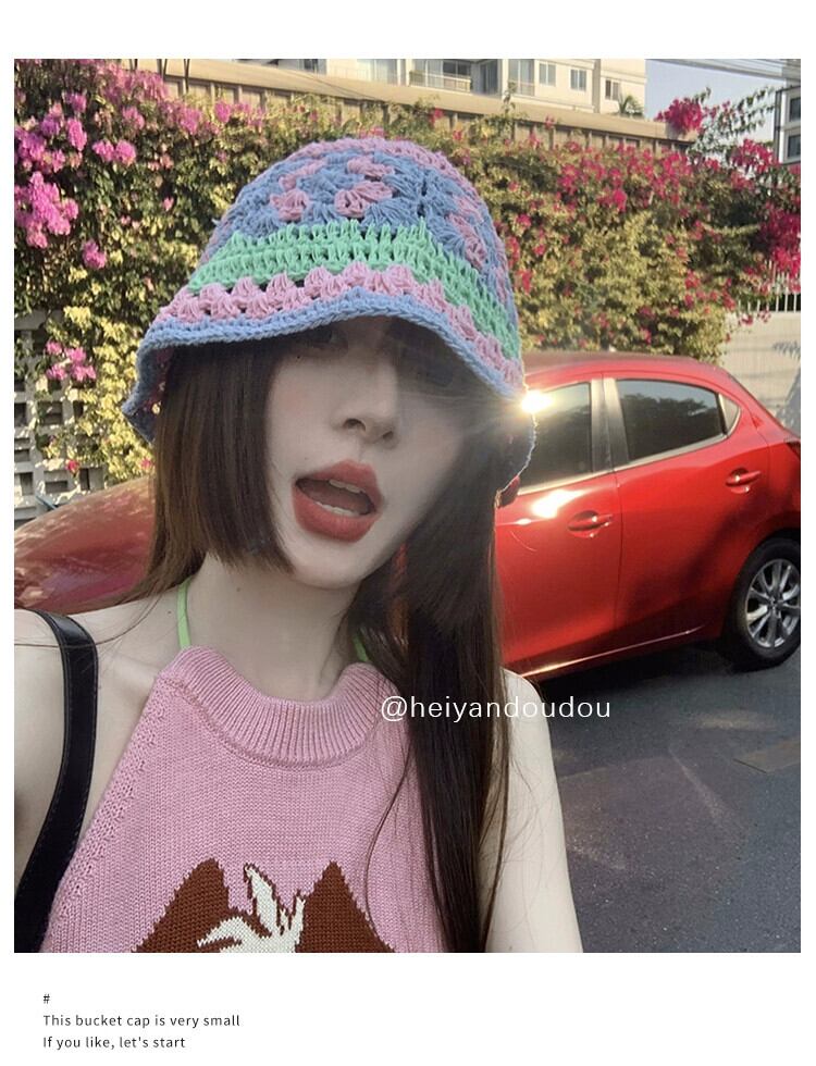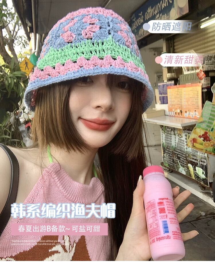 これらのニッチなデザインの小さな新鮮な手編みの盆地帽子、女性の春と夏、甘くて多用途な小さな漁師の帽子、顔付き 大人ガーリー スウィート キュート カジュアル スプリング 春物 サマー 夏物 15dd47309650934