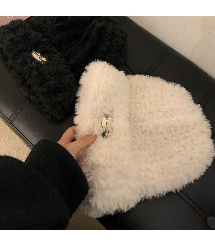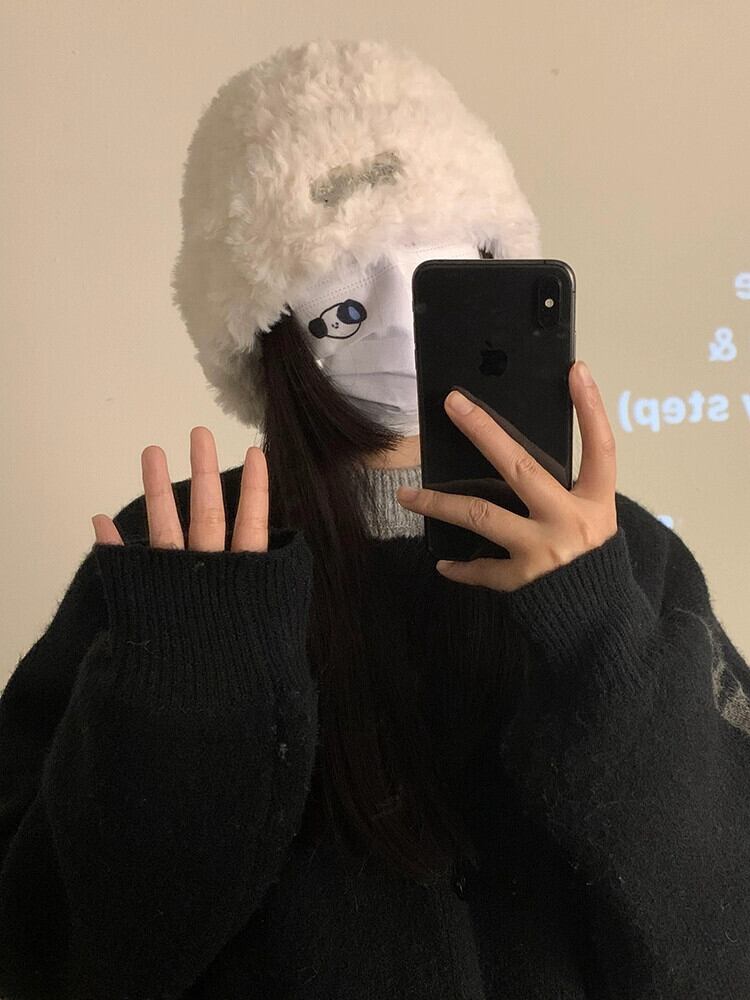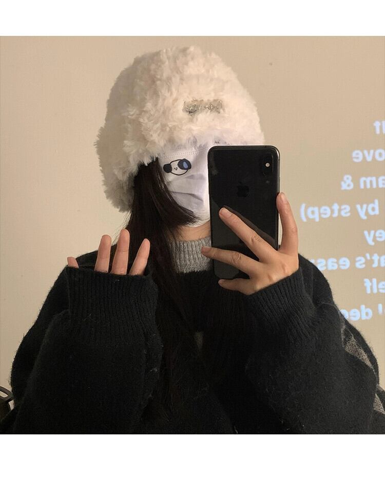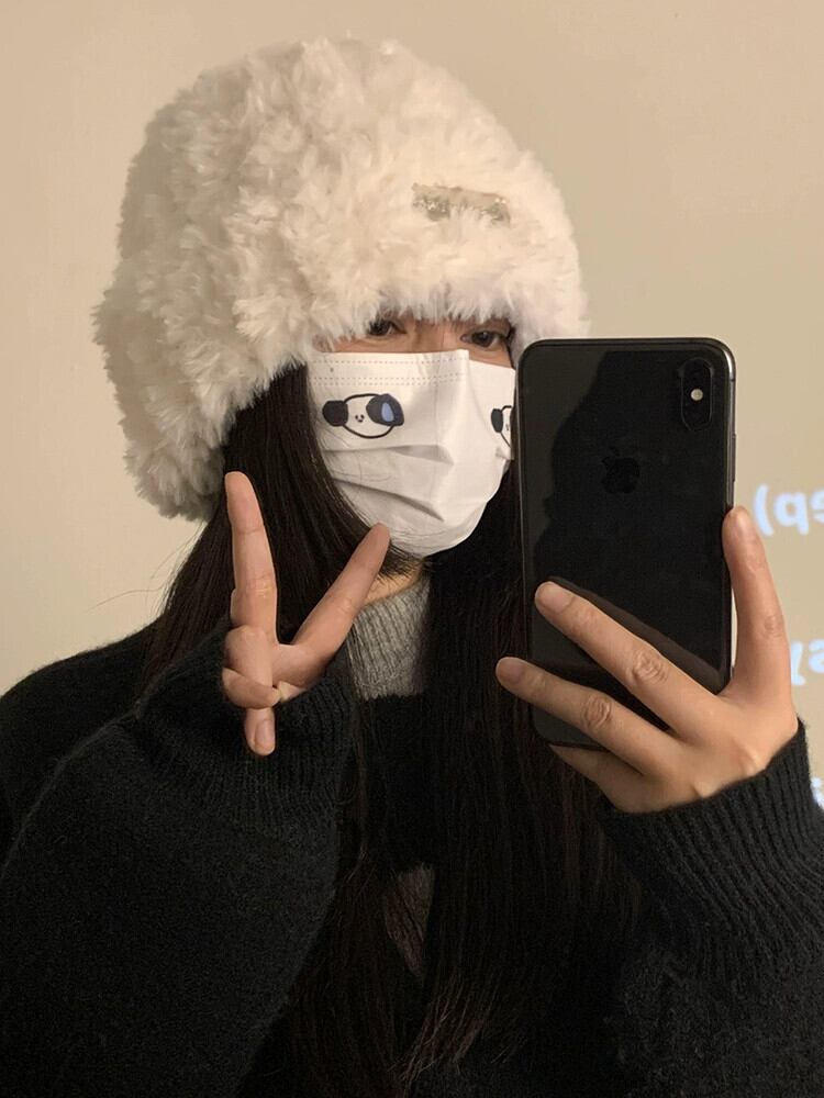 ウール帽子女性の秋と冬のオールマッチ白ニットショーフェイス小さな暖かい豪華な防寒帽子大きな頭耳保護帽子 ホワイト オータム 秋物 ウィンター 冬物 15dd89789415005
