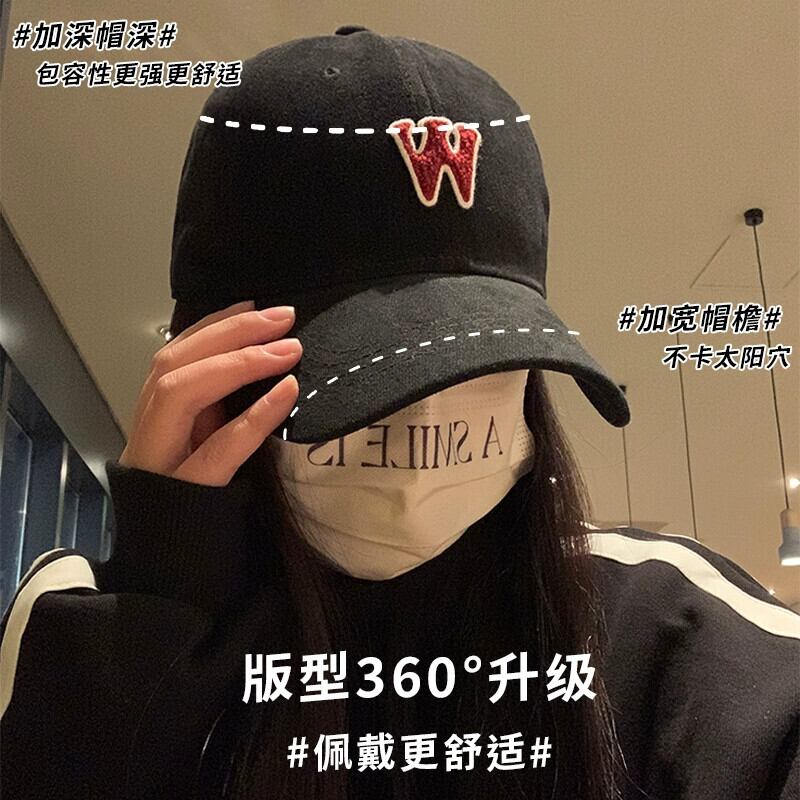 野球帽レディースブラック刺繍バージョンのインオールマッチカジュアルフェイス小さなひさしキャップ男性のトレンディな大きな頭囲 帽子 15dd30778237583