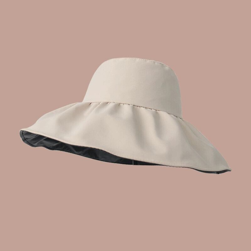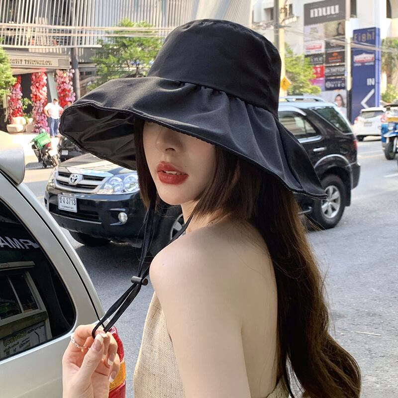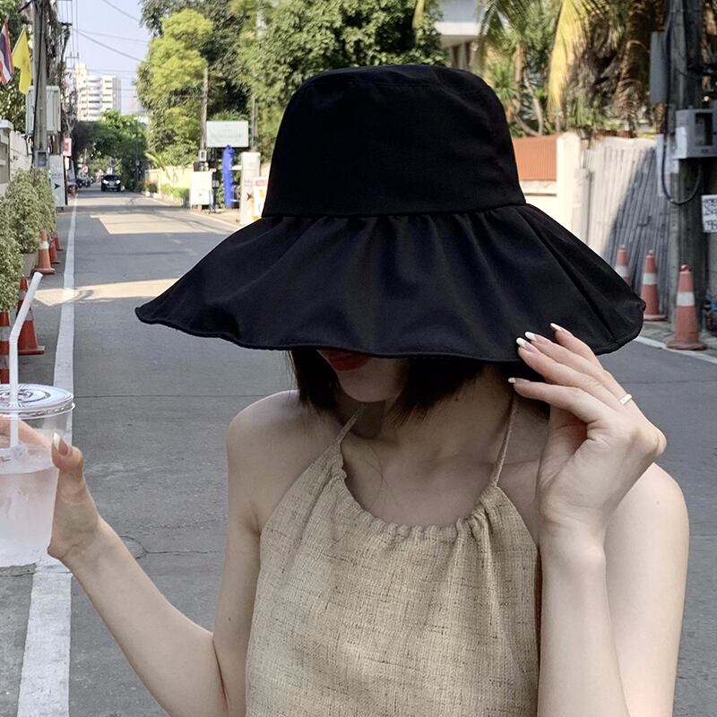 2023 新 UV 黒接着剤サンハット女性の夏の UV 太陽の帽子屋外大きな軒サンシェード漁師帽子 ブラック サマー 夏物 15dd45466950369