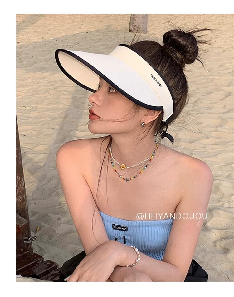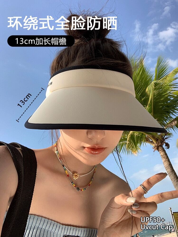UPF50+ 新しい大きなひさし空のトップサンハット女性の抗紫外線顔小さな日よけ帽子サイクリング日よけ帽子 15dd71565579971
