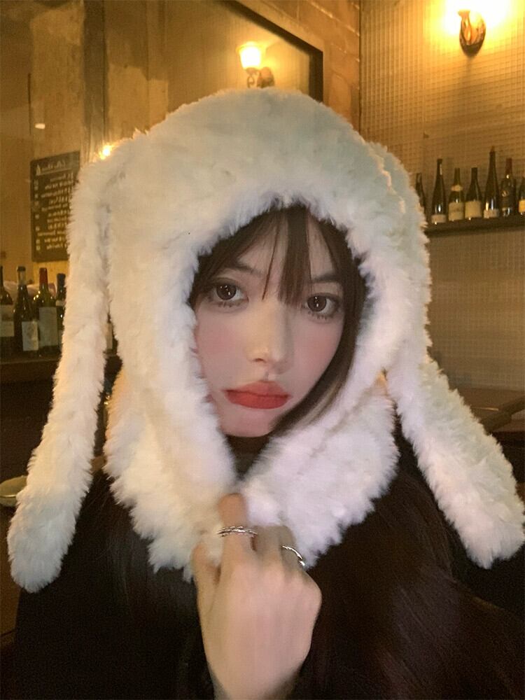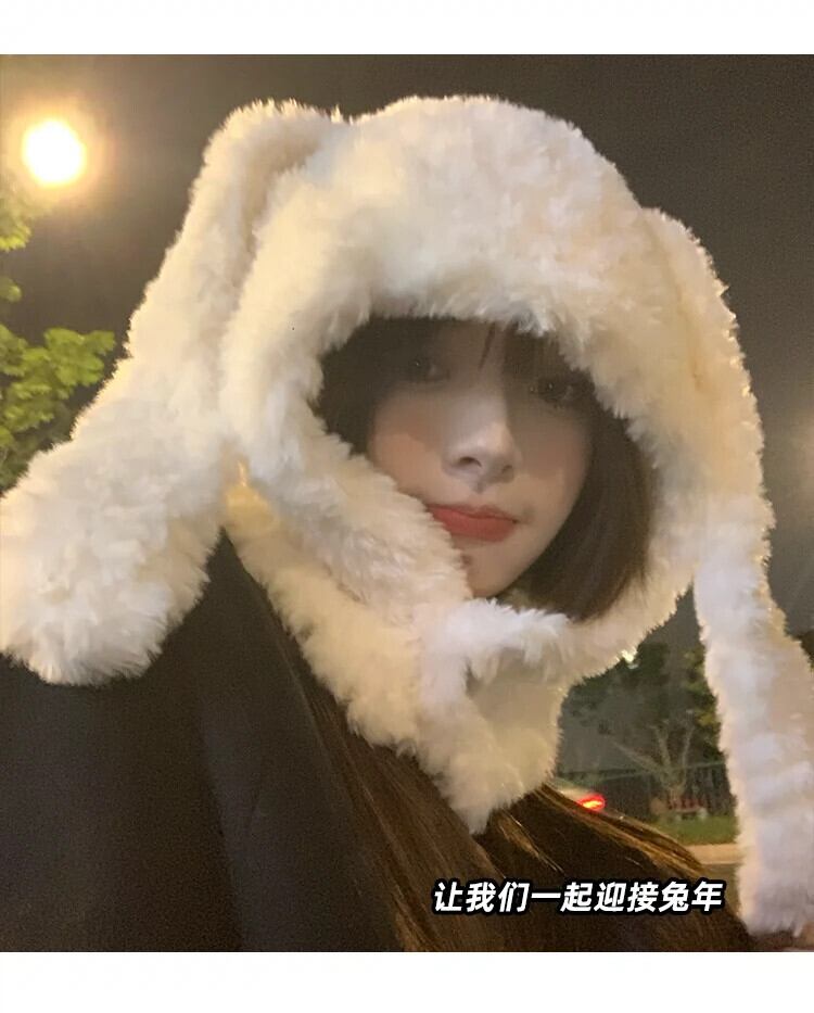 かわいいウサギの耳豪華な帽子女性の冬暖かい厚いコールドウサギのスカーフ片耳プロテクター雷峰帽子 大人ガーリー スウィート キュート カジュアル ウィンター 冬物 15dd90395617793