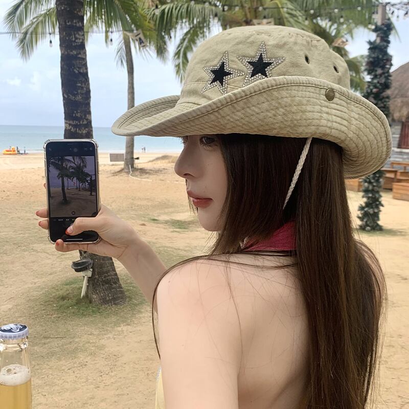 アメリカンレトロスターウエスタンカウボーイハット女性の夏のサンシェード日焼け止め登山帽子アウトドアキャンプ漁師帽子旅行 サマー 夏物 15dd70022853881
