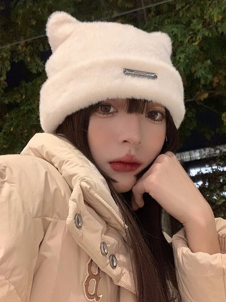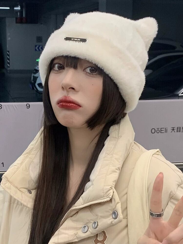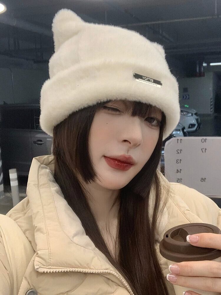 かわいいクマの耳ウール帽子女性の冬肥厚模造ミンクファービーニー多用途イヤーマフ包頭キャップ 大人ガーリー スウィート キュート カジュアル ウィンター 冬物 15dd89706319885