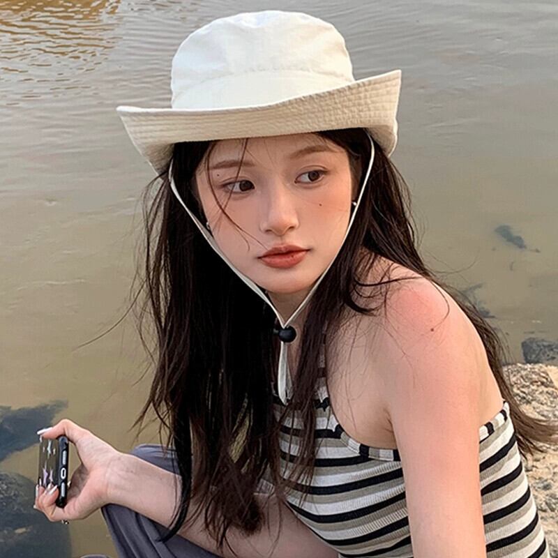 ウエスタンカウボーイハット夏の女性の太陽の帽子薄いセクション大きな軒ビーチ海辺の太陽の帽子屋外キャンプ漁師の帽子 サマー 夏物 15dd98020917509