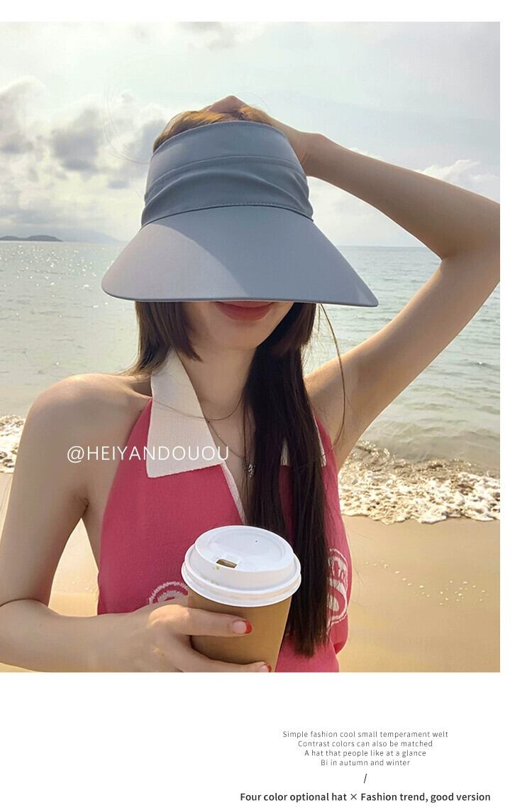 UV サンバイザー 女性の夏の紫外線防止大きな帽子のつばが顔全体をカバーし、顔を見せます小さな空のトップ両面屋外日焼け止めサンハット サマー 夏物 15dd19743445795