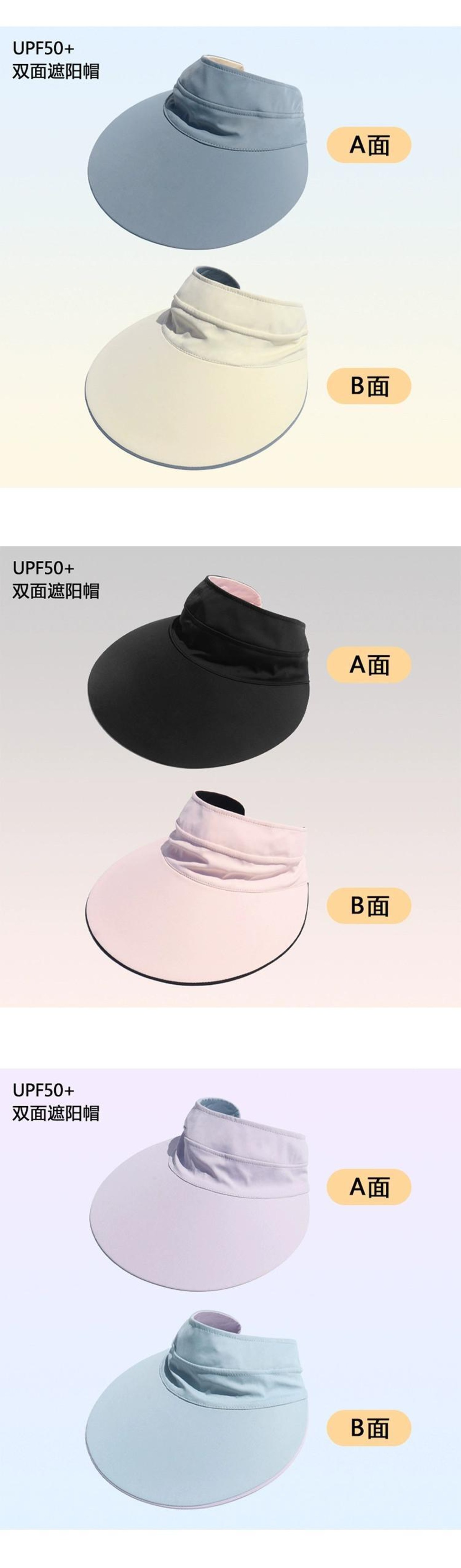 色:両面グレー+ライス、大きめつば、UVカット,両面黒+パウダー、大きめつば、UVカット,両面パープル+ブルー、大きめつば、UVカット,両面ブルー+ブラック、大きめつば、UVカット