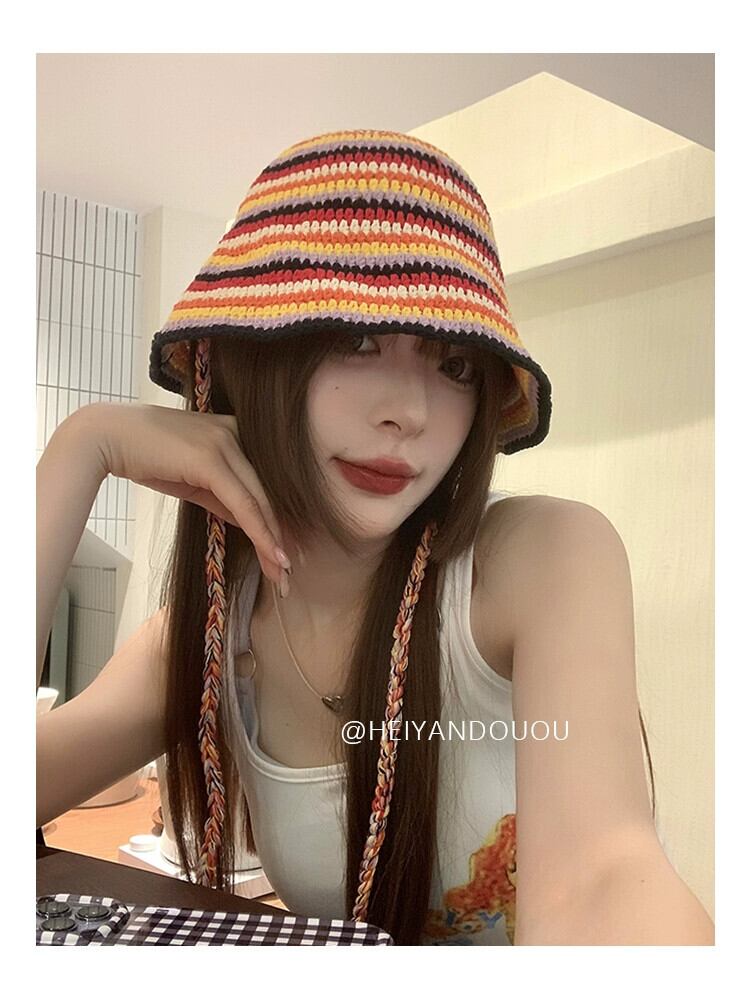 ニッチデザイン漁師帽子女性 2023 新人表示小さなかわいい盆地帽子大きな頭囲ニット帽子潮 大人ガーリー スウィート キュート カジュアル 15dd36494197976