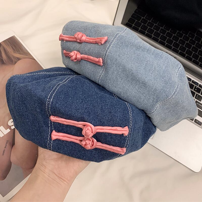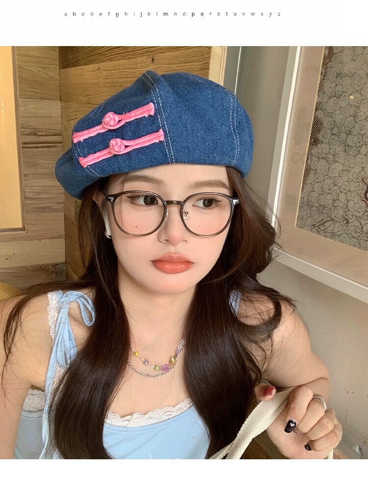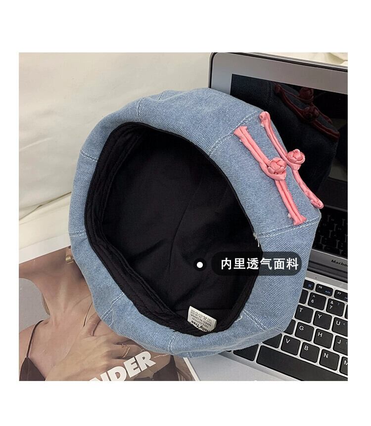 スタイルデニムベレー帽女性の夏バージョンショーフェイス小さな野生のつぼみペインターハット丸顔レトロ八角形帽子潮 サマー 夏物 ベレット ヘアアクセサリー 15dd17225018873
